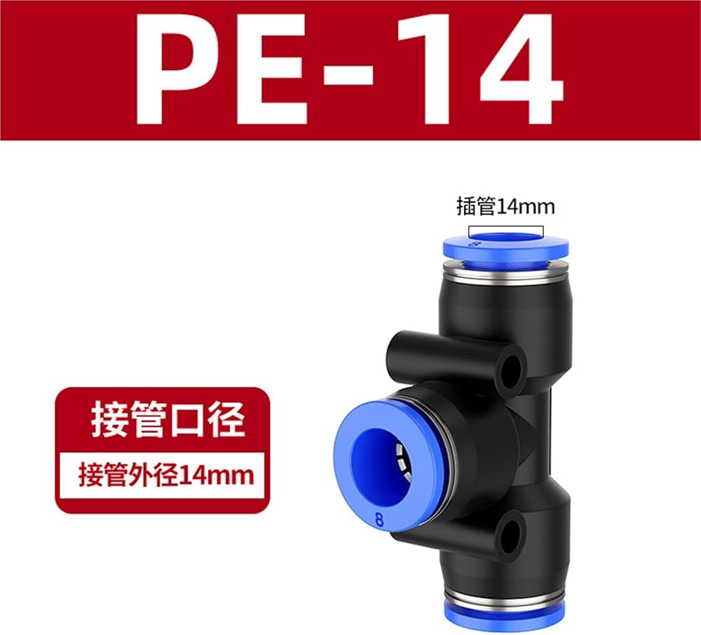 البلاستيك ثلاثي الاتجاه الأزرق PE هوائي مشترك T-شكل موصل سريع 4/6/8/10 مللي متر قطر متغير PEG8-6/10 1 قطعة (PE-14)
