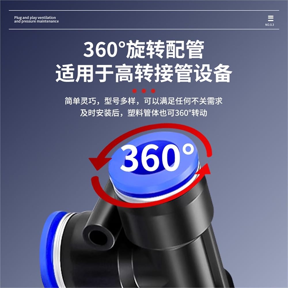 Plastic Three-way Blue PE Pneumatic Joint T-shaped Quick Connector 4/6/8/10mm Variable Diameter PEG8-6/10 1Pcs