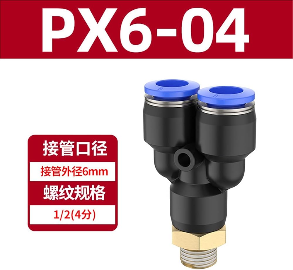 موصل سريع ثلاثي الاتجاه على شكل Y PX4-M5/6-01/8-02 خيط خارجي هوائي 1 قطعة (PX6-04)