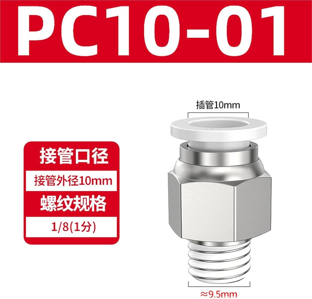 هوائي النحاس موصل سريع الموضوع مستقيم PC4-M5 8/10-02 القصبة الهوائية 6-01/12-04 أبيض وأسود 1 قطعة (白色PC10-01)