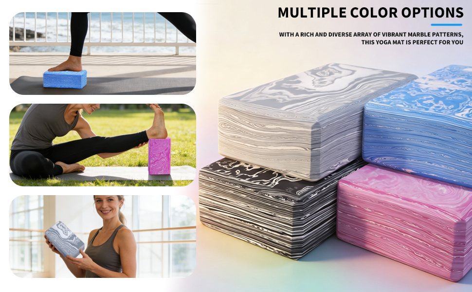 قالب يوجا أنيق بتمويه رخامي فريد من نوعه: يتميز قالب اليوجا هذا بنمط مموه رخامي فريد بأربعة ألوان مميزة (أزرق، وردي، أسود، رمادي). أكثر من مجرد أداة، تصميمها الفني يجعل مجموعة مكعبات اليوغا هذه المكونة من قطعتين ممتعة للاستخدام الشخصي وهدية مميزة لأي محب لليوجا.