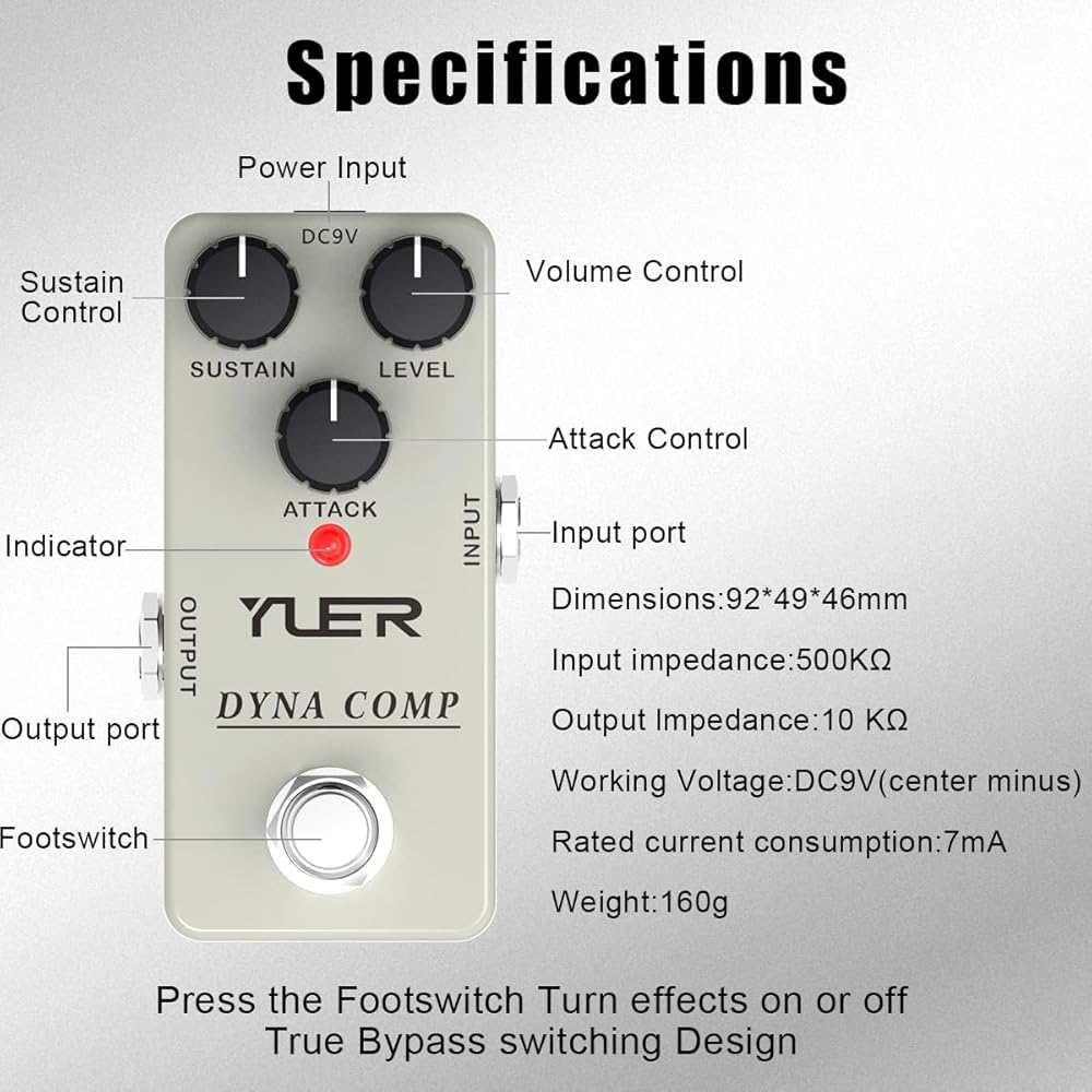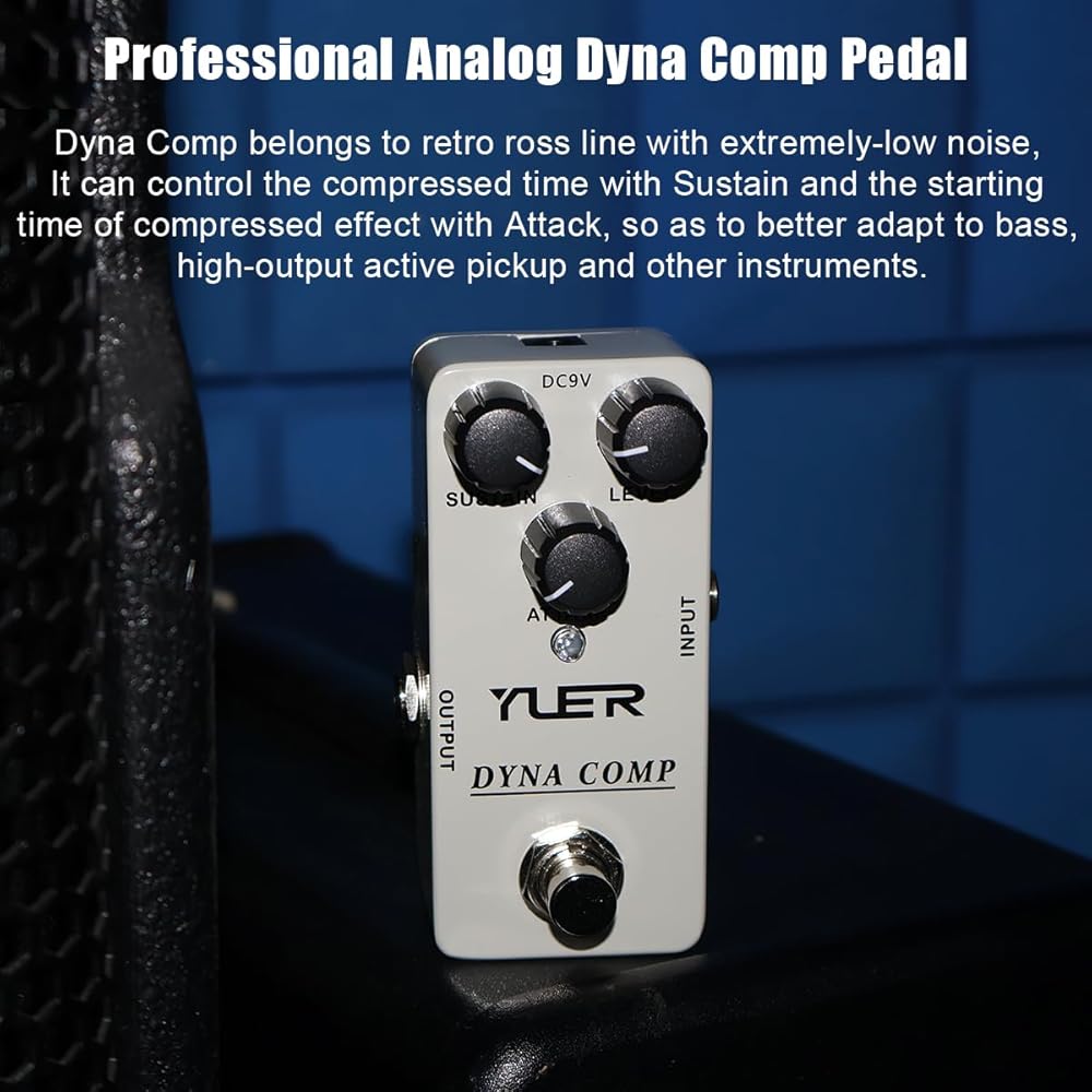 ضغط Dyna Comp الكلاسيكي - تعمل دواسة ضاغط الجيتار هذه على إعادة إنشاء الضغط التناظري على طراز روس الأيقوني مع الحد الأدنى من الضوضاء، مما يعزز الاستدامة والتحكم الديناميكي في الجيتارات الكهربائية.