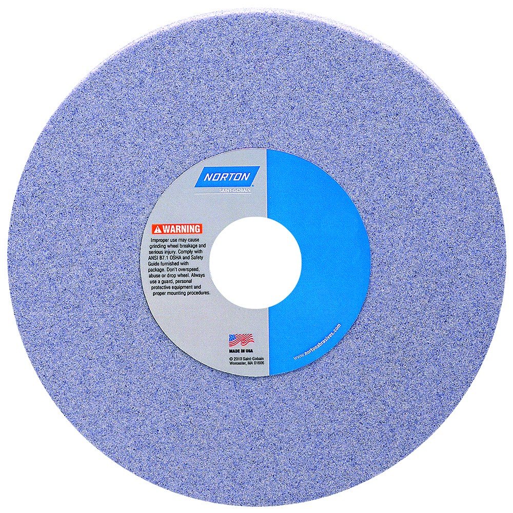Norton Type 01 vitrified straight toolroom grinding wheel. Used on surface, cylindrical, and tool and cutter grinders, Norton precision, form-holding vitrified toolroom wheels maximize your productivity. For every ferrous and nonferrous MRO, small job shop, and production operation. Better choice for medium to heavy stock removal. Sharp monocrystalline aluminum oxide grain the industry's most versatile abrasive purple. Free cutting on a wide range of applications and materials. Outstanding form holding. Measures 7-inches diameter by 1/4-inches width, 1-1/4-inches arbor.