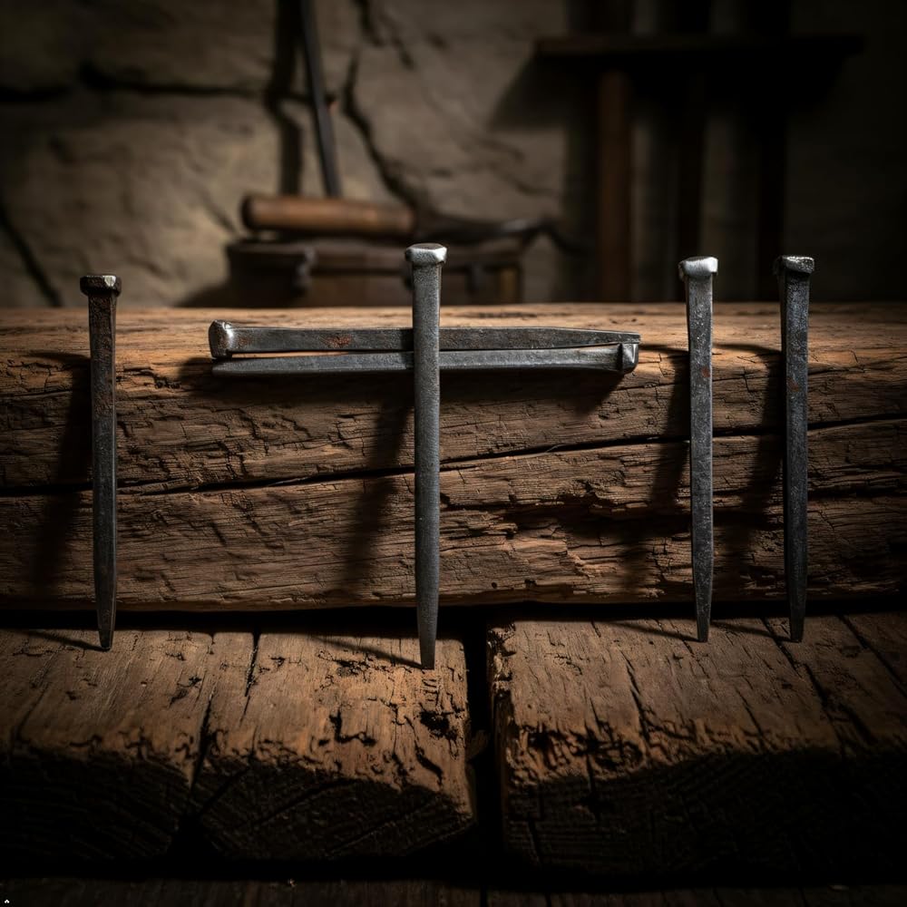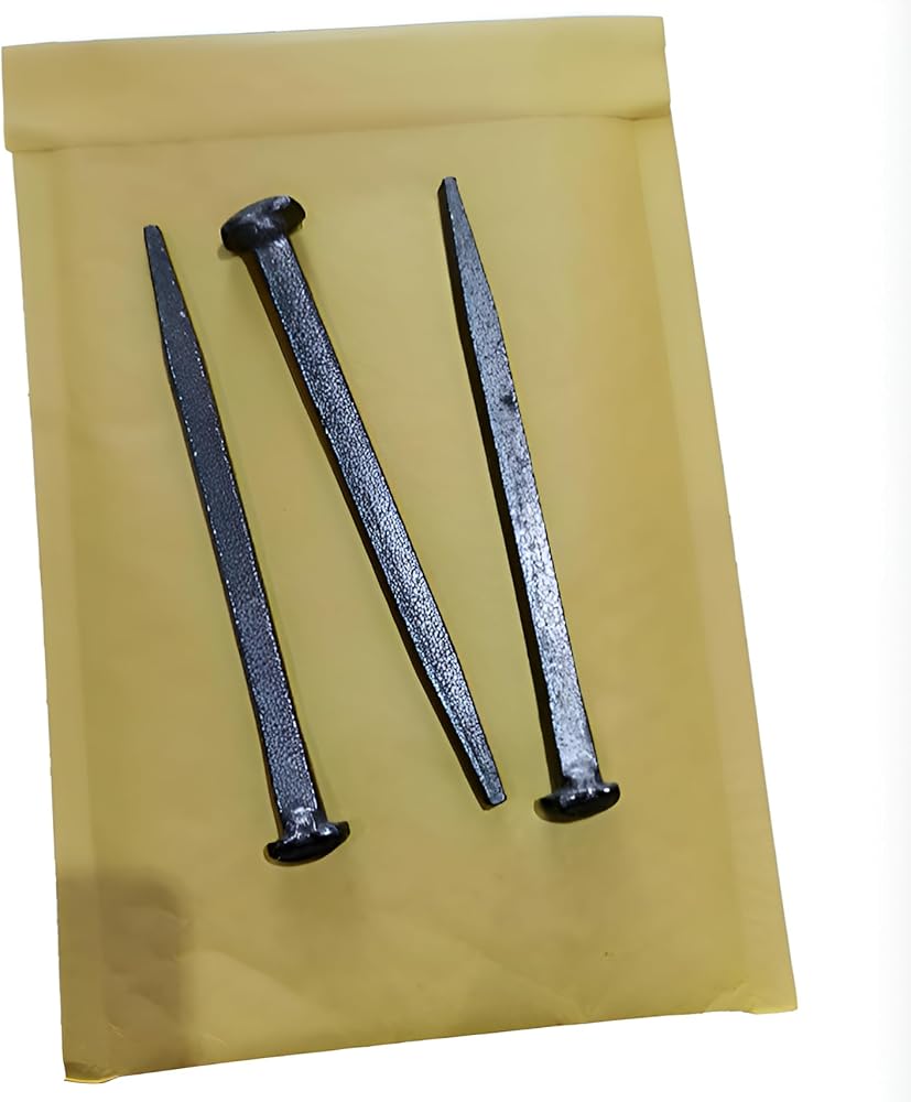 Authentic Iron Replica: 6.3-inch Roman-era nails with hand-forged texture and flat head design.