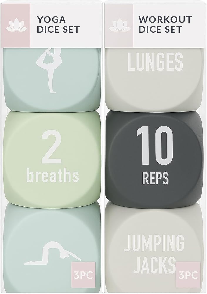 Make your workouts fresh, exciting, and motivating with this Yoga & Exercise Dice Set—the perfect fitness tool for building strength, improving flexibility, and staying consistent at home or on the go. Each roll of the dice creates a new workout routine so you never get bored, never have to guess what to do next, and always stay focused. The set includes yoga poses, strength exercises, stretches, cardio movements, breathing cues, and rep counts—everything you need for a full-body workout in minutes. Whether you're practicing yoga, doing HIIT, warming up, cooling down, or building a daily movement habit, these fitness dice make exercise simple, fun, and effective. Great for solo workouts, couples' fitness, group classes, family workout nights, or personal training sessions. Lightweight and easy to carry, this set fits perfectly into any gym bag, desk drawer, or travel kit—so you can stay active anywhere. It also makes a great wellness gift for yoga lovers, fitness beginners, and gym fans of all ages. Yoga Dice Set – Accessories for Women Game for Kids & Adults – 6 Foam Dice with 12 Mixed Poses – Perfect for Yoga Class, Home Workouts, Group Activities, and Mindfulness Practice. Roll the dice… move your body… and make staying healthy FUN again!