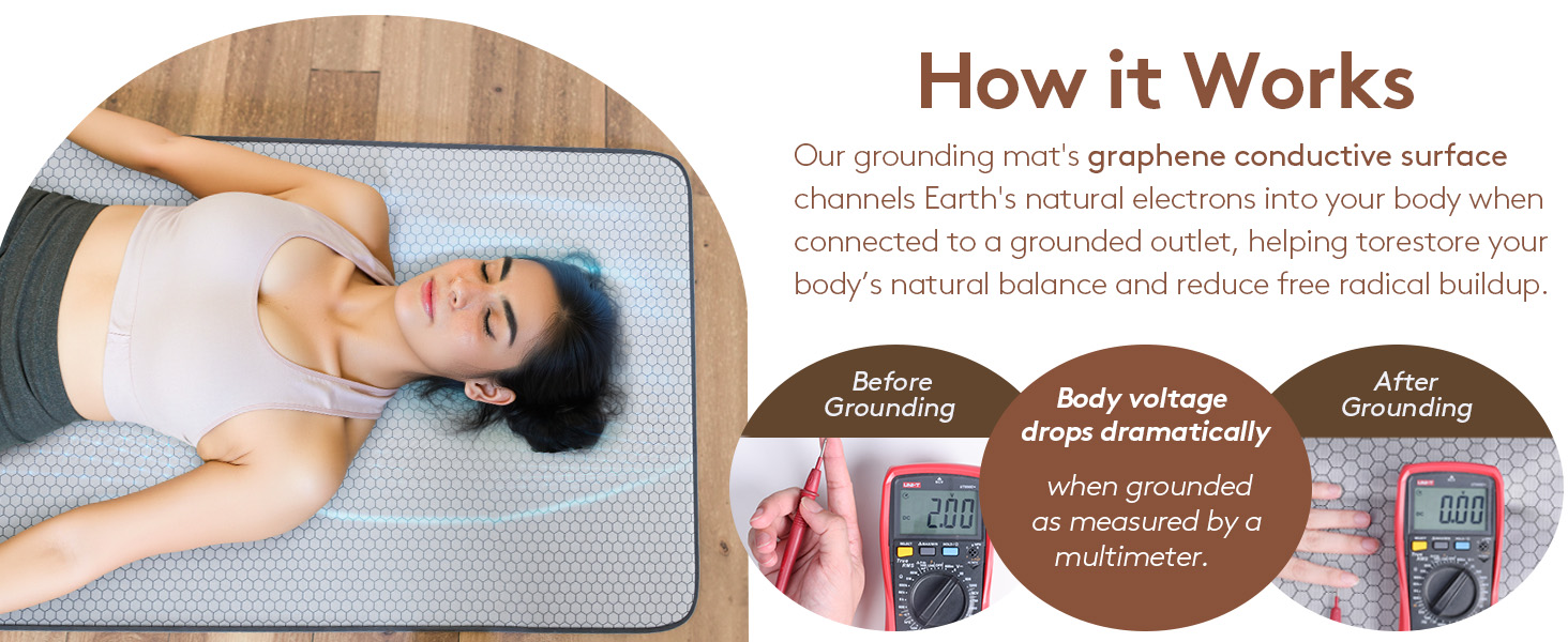 • مناسب لجميع الأعمار - التأريض آمن ويناسب الجميع، بغض النظر عن العمر. إنها ظاهرة تحدث بشكل طبيعي بنسبة 100% وتعمل بشكل مماثل للمشي في الهواء الطلق حافي القدمين.