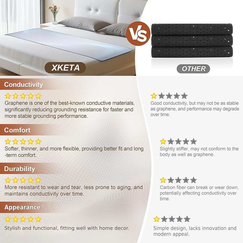 • نوم أفضل وحياة أفضل - تعمل حصيرة XKETA على نقل إلكترونات الأرض إلى سريرك من خلال الكابل الأرضي، مما يساعد على النوم عن طريق موازنة الجهاز العصبي اللاإرادي ويقلل مستويات التوتر والقلق. يوازن التأريض هذا النظام ويعزز استرخاء العضلات وتقليل التوتر، مما يسهل النوم والبقاء في النوم.