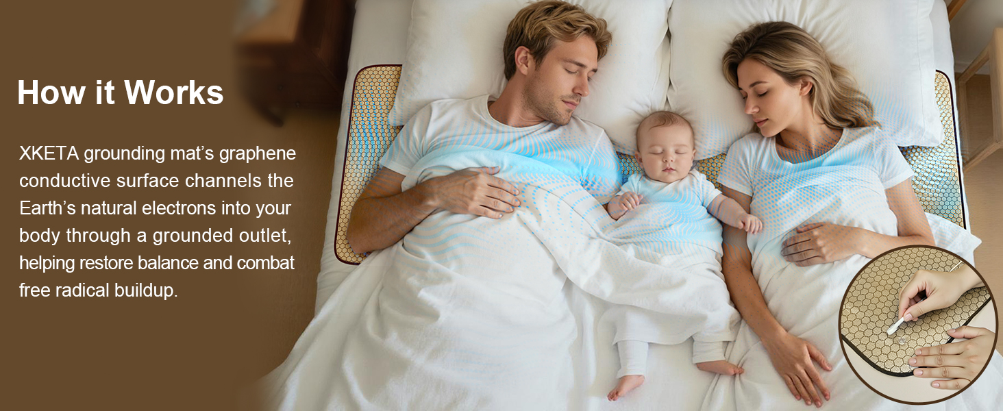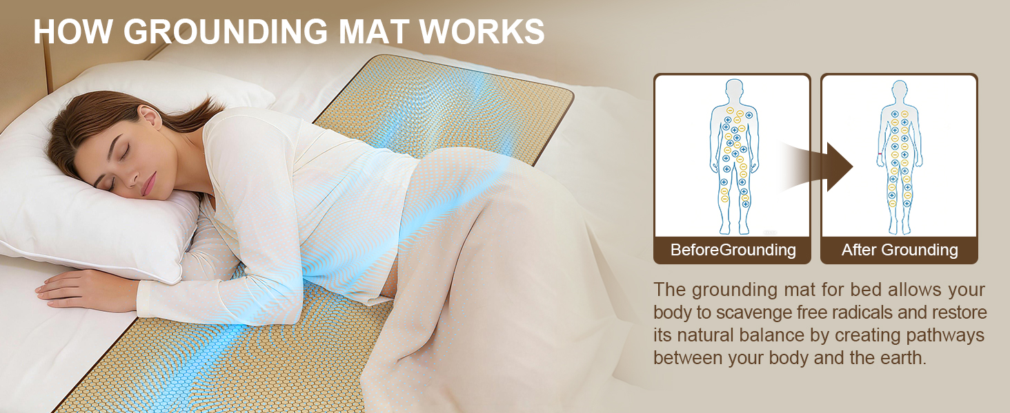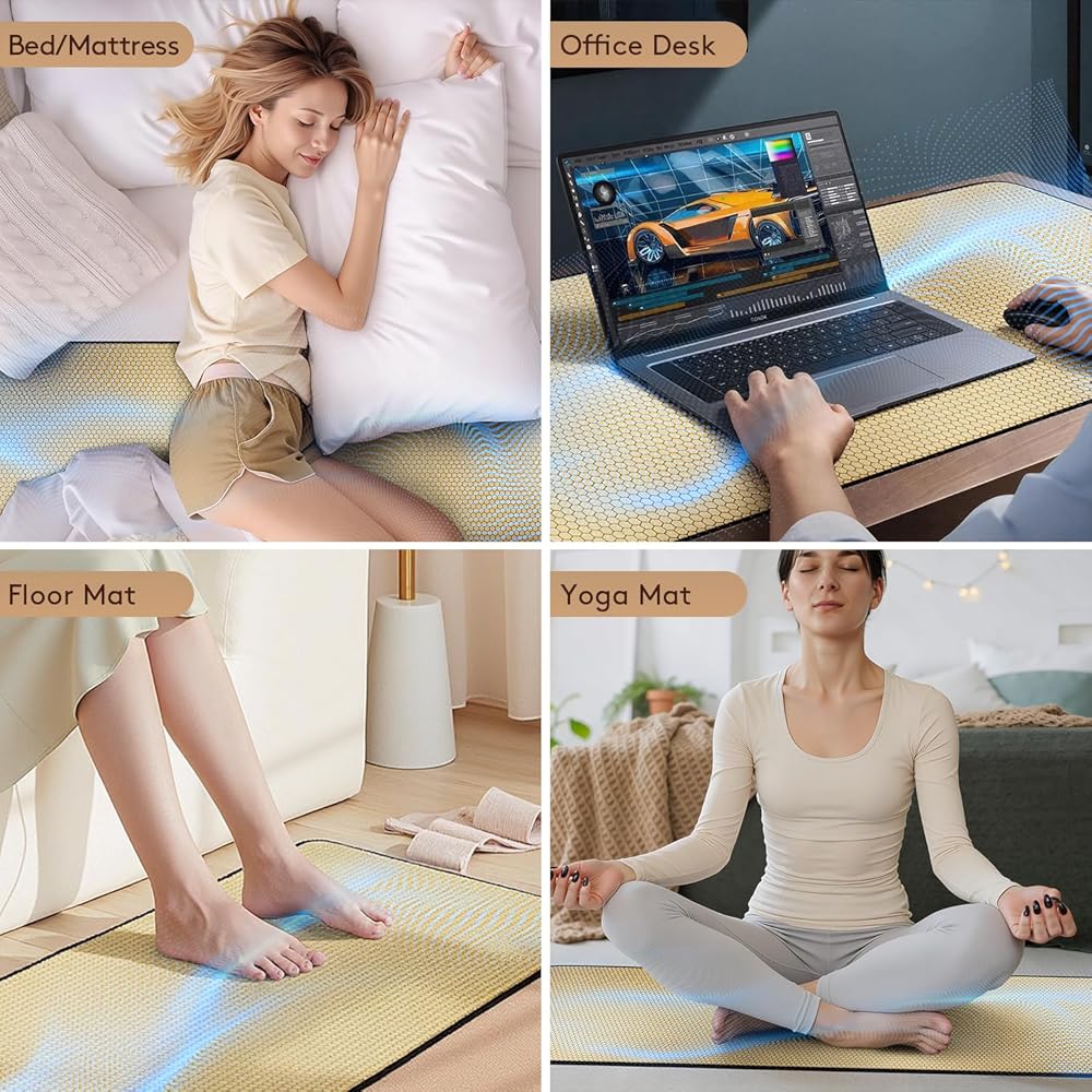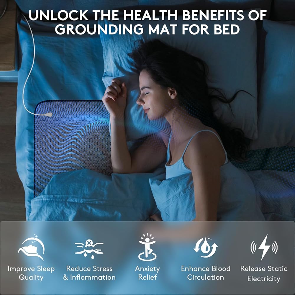 تصميم أرضي من أجل صحة شاملة - تواصل مع إلكترونات الأرض من خلال حصيرة التأريض الخاصة بنا، والتي تنظم جهد الجسم بشكل طبيعي لتعزيز الصحة الشاملة. تخفيف التوتر والتعب بشكل فعال، وتعزيز الدورة الدموية، وتحسين النوم وتوفير المزيد من الطاقة.
