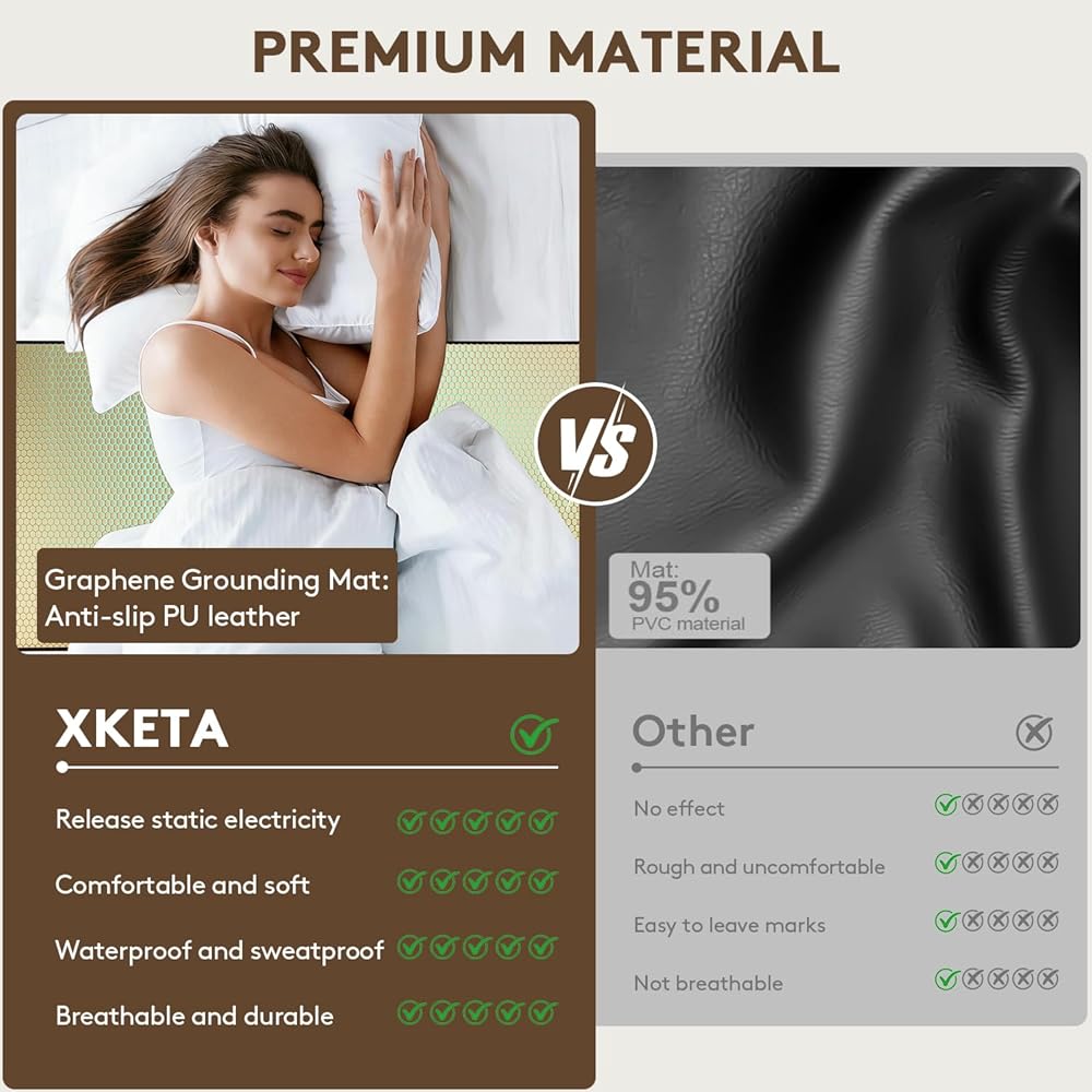 مادة موصلة ممتازة - مصنوعة من مادة الجرافين عالية الجودة وغير سامة وجيدة التهوية، بساط التأريض الخاص بنا متين وخفيف الوزن وسهل التنظيف. يضمن سطحه الناعم غير القابل للانزلاق التأريض الفعال والراحة.
