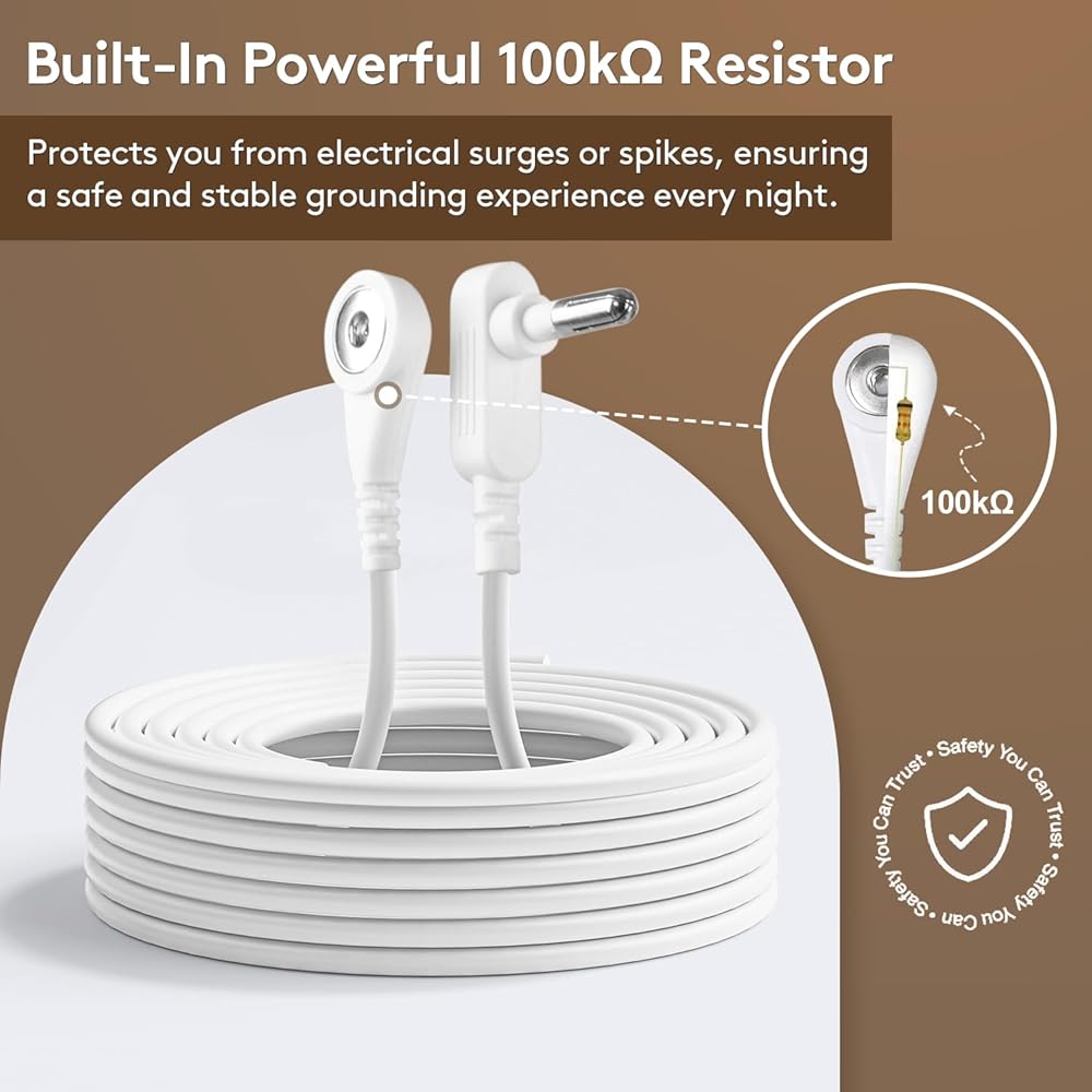 السلامة أولاً - قم بإعطاء الأولوية للسلامة من خلال سلك التأريض الخاص بنا المجهز بمقاومة مدمجة تبلغ 100 كيلو أوم. يضمن السلك المؤرض الذي يبلغ طوله 15 قدمًا المرونة في الإعداد، ويلبي تكوينات الغرف المختلفة. مفيد بشكل خاص لأولئك الذين يعانون من ضعف جودة النوم، حيث يجعل نظام التأريض الخاص بنا من رفاهيتك أولوية قصوى.
