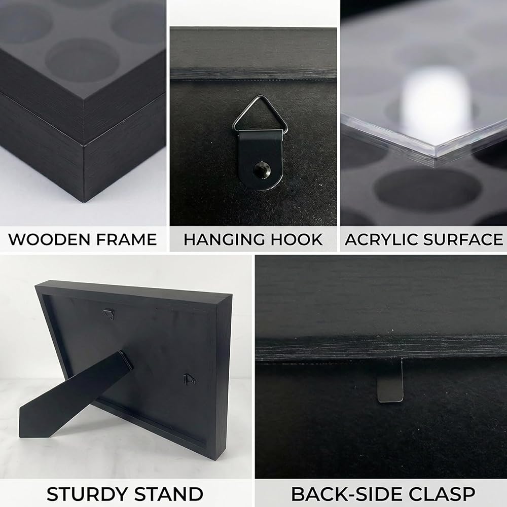 شاشة عرض مرنة وملحقات: تدعم كلاً من شاشة العرض المثبتة على الحائط وعلى سطح الطاولة، وتأتي فتحة الرقاقة الخاصة بنا مع 3 مثبتات خالية من الأظافر وأداة اختيار واحدة، تركيب خالي من التلف، مما يجعل الجراب بسيطًا لإنشاء عرض مجموعتك الشخصية.