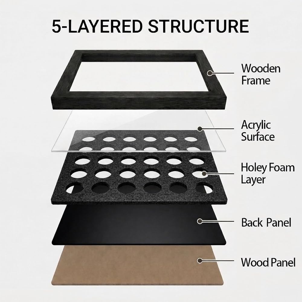 مجموعة مواد فاخرة: مصنوعة بإطار خشبي متين وسطح أكريليك عالي الشفافية، وتحتفظ علبة العرض بالملمس الطبيعي للخشب مع تقديم مظهر حديث وبسيط - يجمع بين المتانة والجاذبية الجمالية.