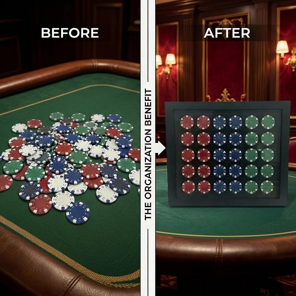 مثالية للتخزين والهدايا: تحافظ على تنظيم الرقائق المتناثرة وترتيب سطح المكتب. بفضل التصميم البسيط والأنيق، تعد حافظة العرض هدية عملية ومدروسة لعشاق البوكر.