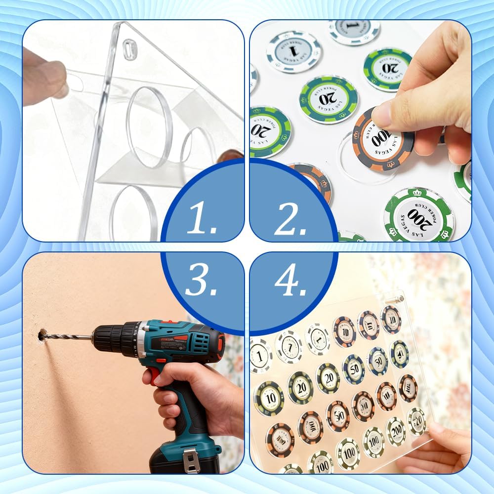 【 سهل التركيب وشاشة متعددة الاستخدامات】يتضمن رف عرض الرقاقة المرن هذا أجهزة لسهولة التركيب على الحائط كعرض عملات معدنية موفر للمساحة. كما أنه يعمل بشكل مثالي كحامل لرقائق لعبة البوكر على الطاولة أو شاشة عرض شرائح لعبة البوكر للجولف، ولا يتطلب تجميعًا للاستخدام الفوري.
