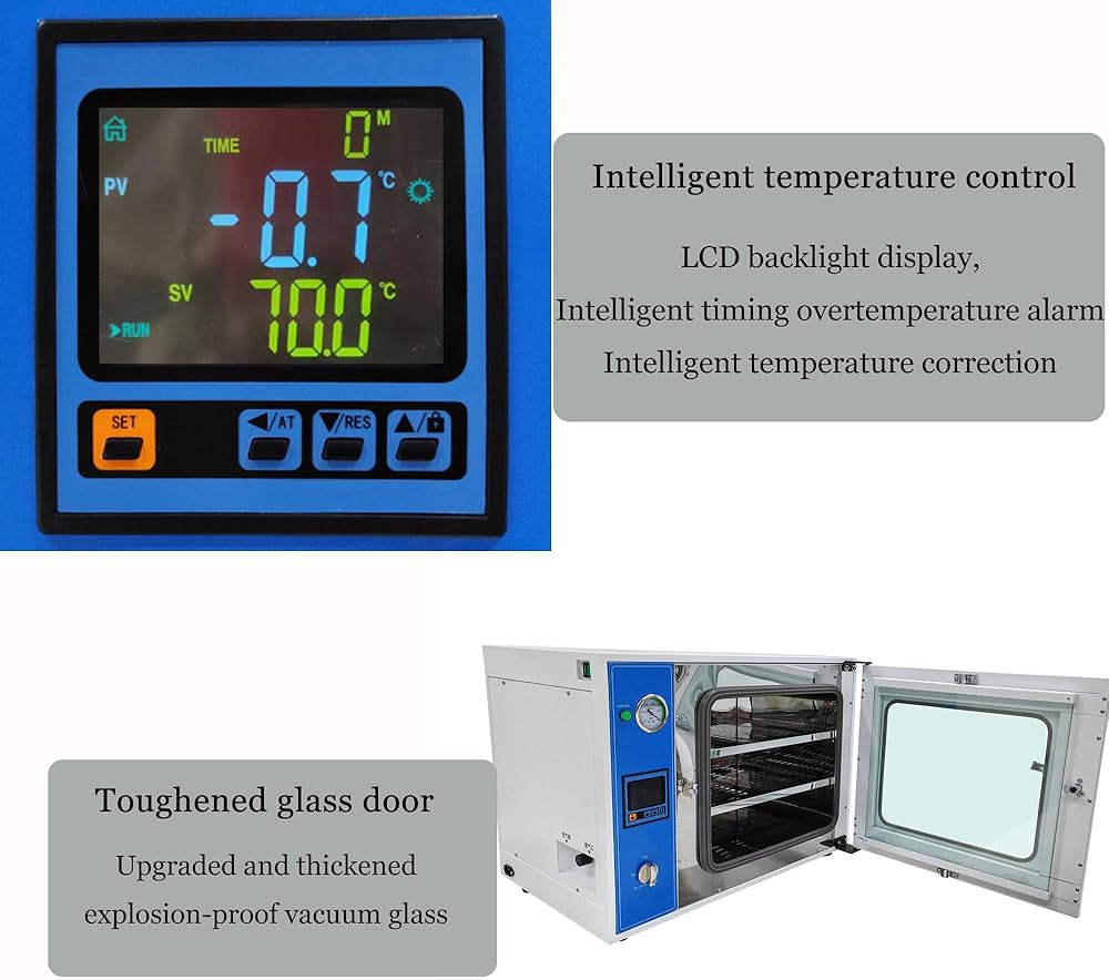 • [Wide Application]: Suitable for drying and heating processes under vacuum conditions at laboratories in enterprises, schools and scientific institutions. It is especially suitable for rapid and efficient drying of heat-sensitive, easily decomposed, easily oxidized substances and complex components.