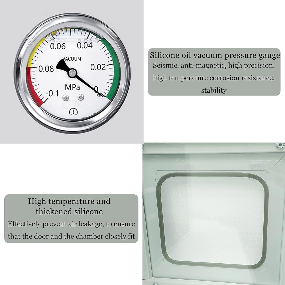 • [Excellent Design]: with silicone oil vacuum pressure gauge, high quality,high precision and stability. The sealing ring is adopt high temperature and thickened silicone, effectively prevent air leakage, to ensure that the door and the chamber closely fit.