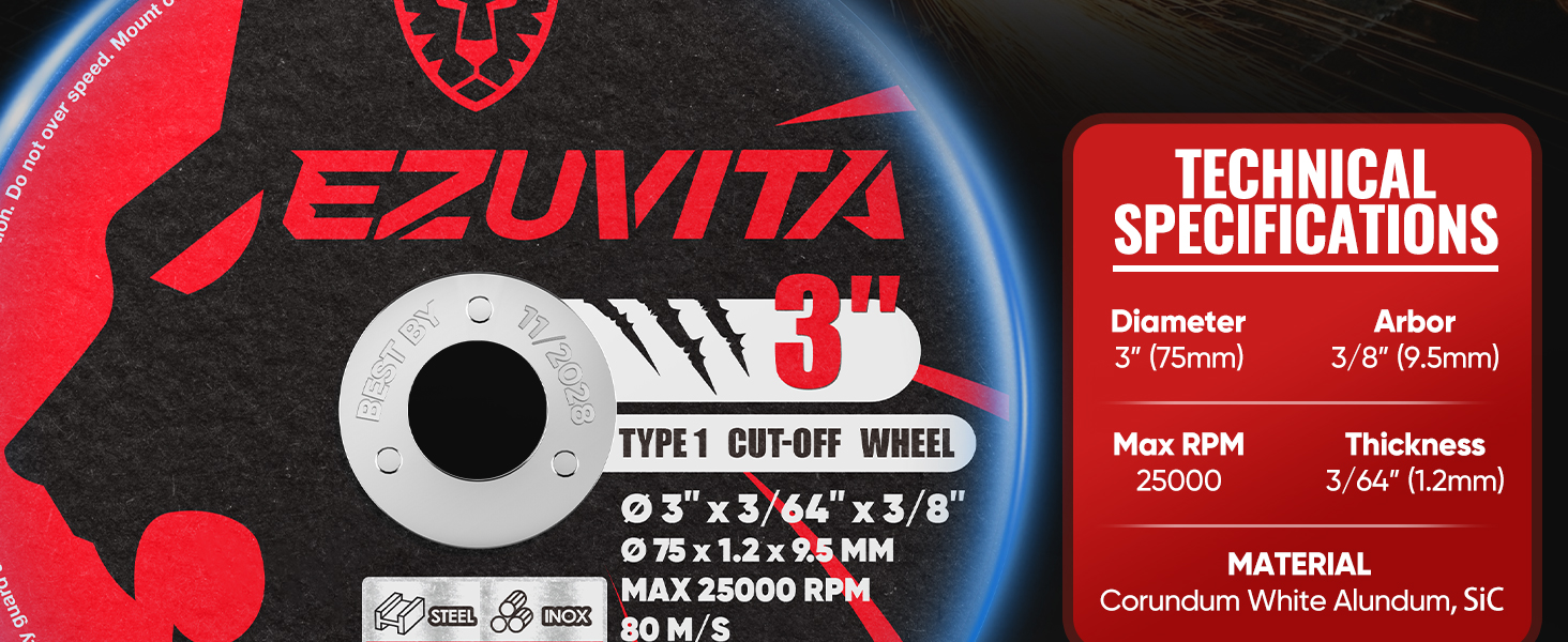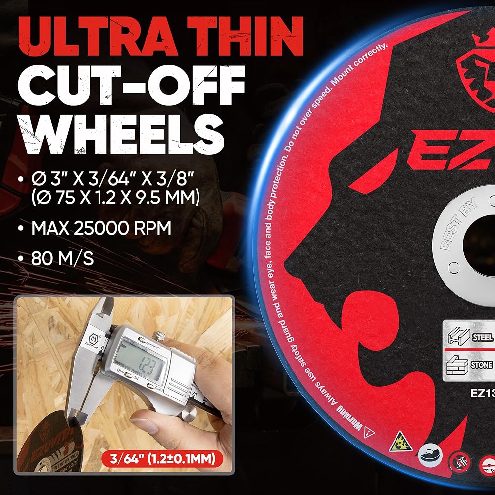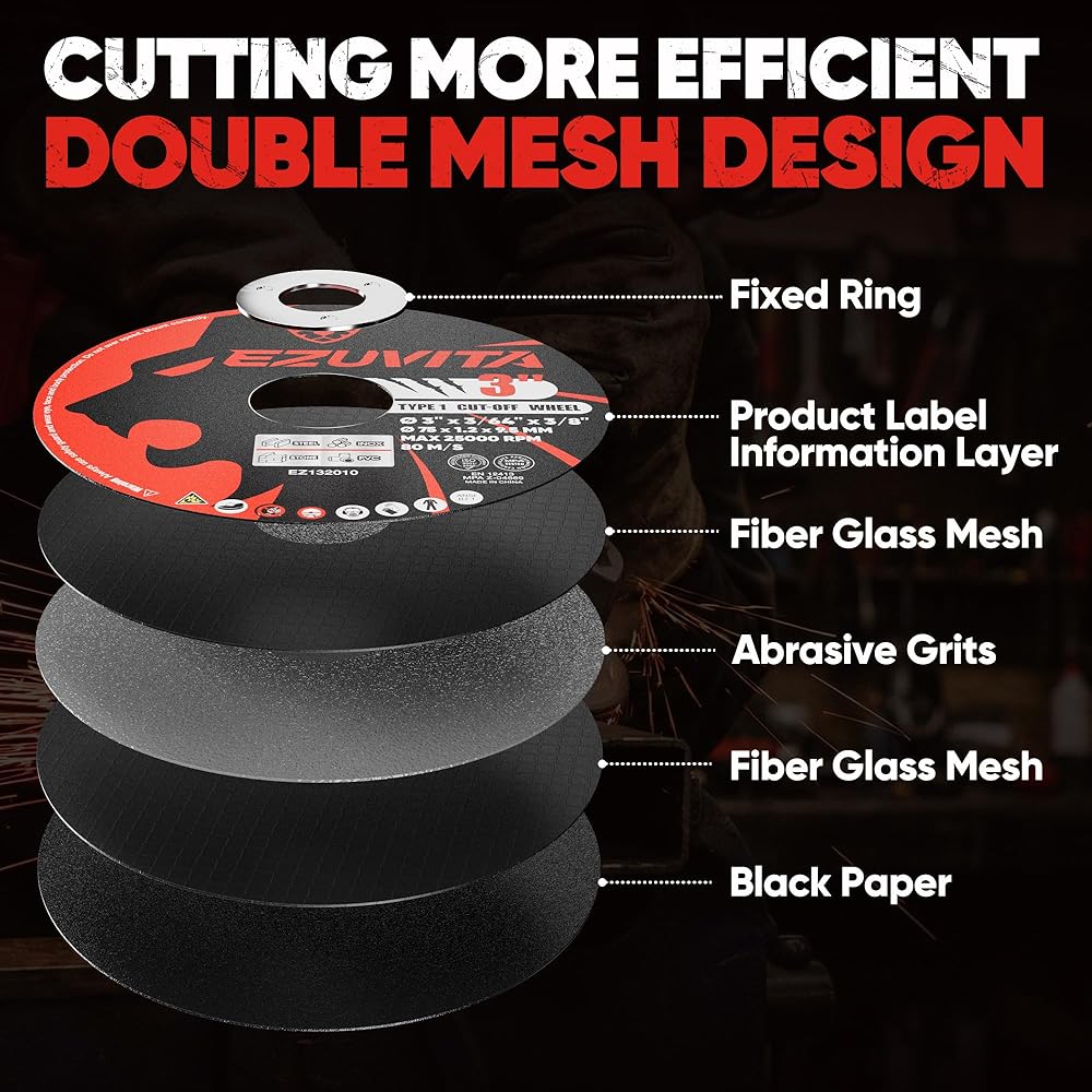 قطع دقيق للغاية مع تصميم شبكي مزدوج: تتميز هذه العجلات المقطوعة مقاس 3 بوصة بتصميم رفيع للغاية مقاس 3/64 بوصة معزز بشبكة من الألياف الزجاجية مزدوجة الطبقة، مما يزيد من ثبات الشفرة ويمنع الكسر، مما يوفر قطعًا سلسة ونظيفة وخالية من الاختباء مع الحد الأدنى من الحرق