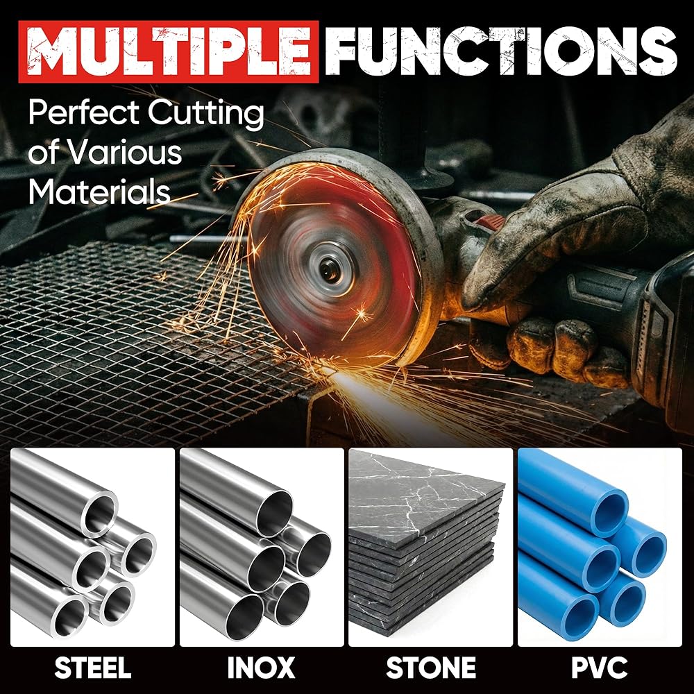 قطع متعدد الاستخدامات لمواد متعددة: قادر على إجراء عمليات قطع سريعة ودقيقة على الفولاذ والإينوكس والحجر والـ PVC، بما في ذلك الأنابيب الفولاذية وقضبان التسليح الفولاذية الهيكلية والفولاذ المجلفن والصفائح المعدنية والأنابيب الهيكلية والمعادن الحديدية وغير الحديدية الأخرى والرخام. تتعامل عجلة القطع الواحدة مع العديد من المواد بكفاءة، مما يوفر الوقت ويقلل من تغيرات الشفرة