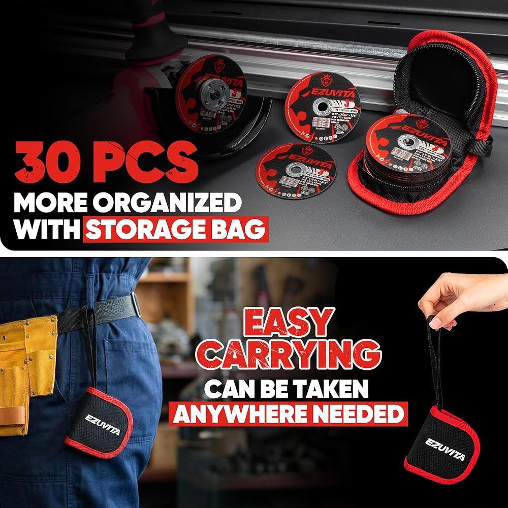 حقيبة تخزين محمولة لسهولة التنظيم والحمل: تأتي هذه العبوة المكونة من 30 عجلات مقطوعة مقاس 3 بوصات مع حقيبة تخزين محمولة، مما يحافظ على أقراصك مرتبة بشكل أنيق وسهل الوصول إليها. يمكن ربط الحقيبة بحزام أو حملها باليد لسهولة النقل والاستخدام في أي مكان