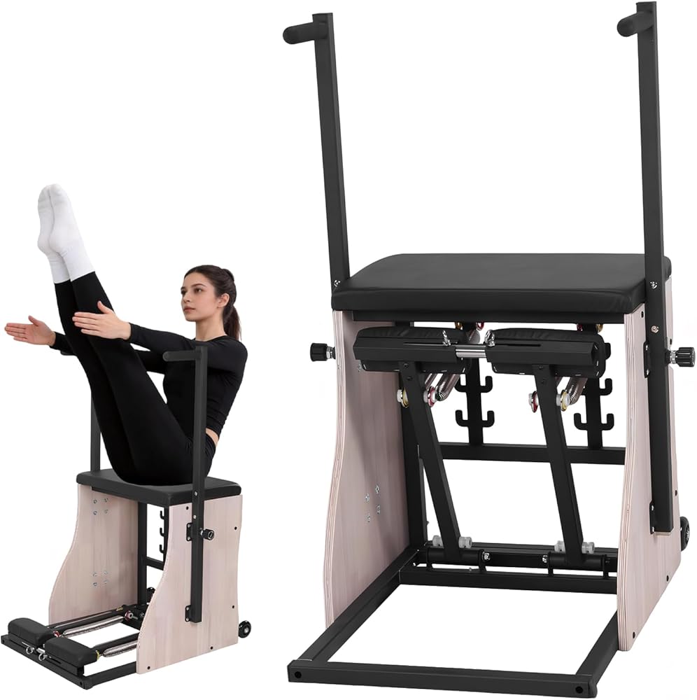 Multi-Functional Exercise Chair: Empower your entire body with the pilates chair, designed for 30+ strength and flexibility routines. The split-pedal stability combo chair and adjustable handles allow seamless transitions for customized training sessions.