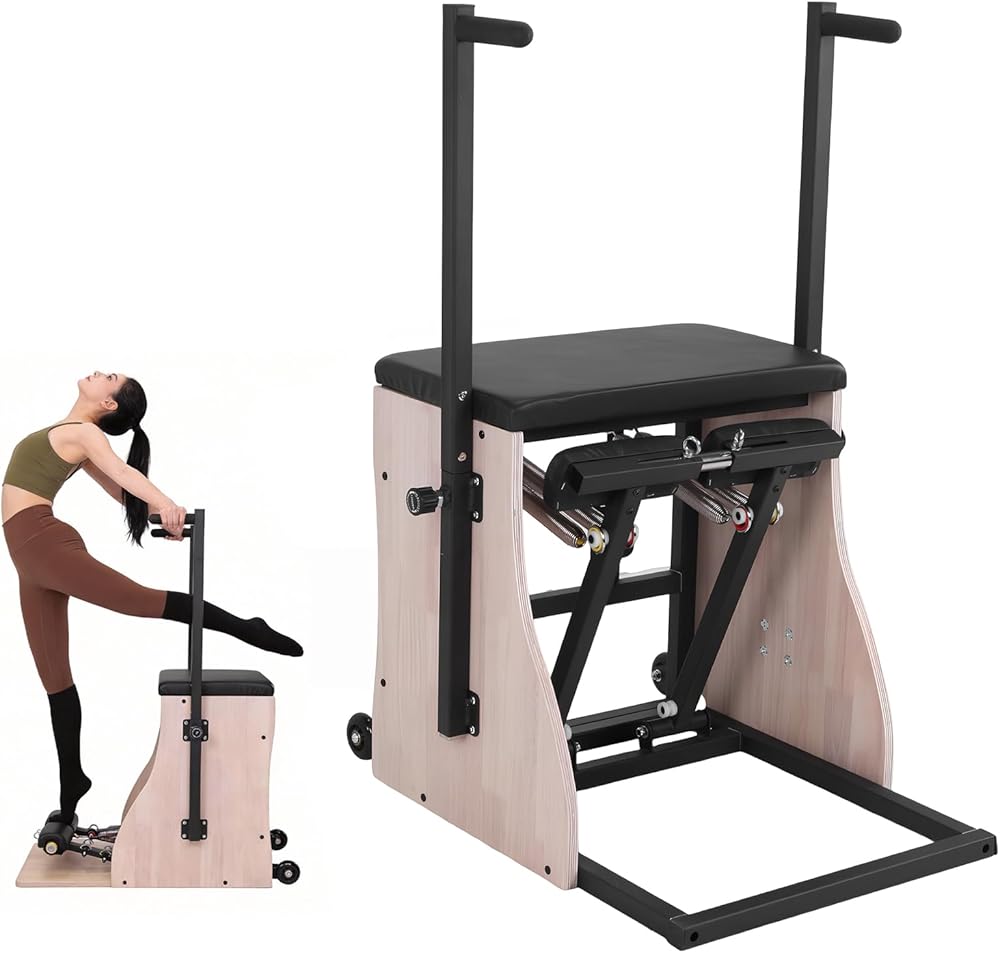 Easy to Store and Use: The professional yoga chair pilates machine is non-folding but can lean against a wall when not in use, providing a convenient and space-saving solution for full-body workouts in limited areas.