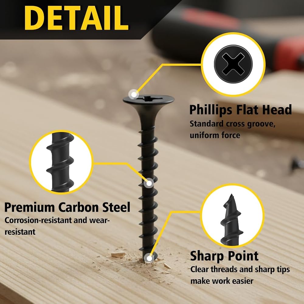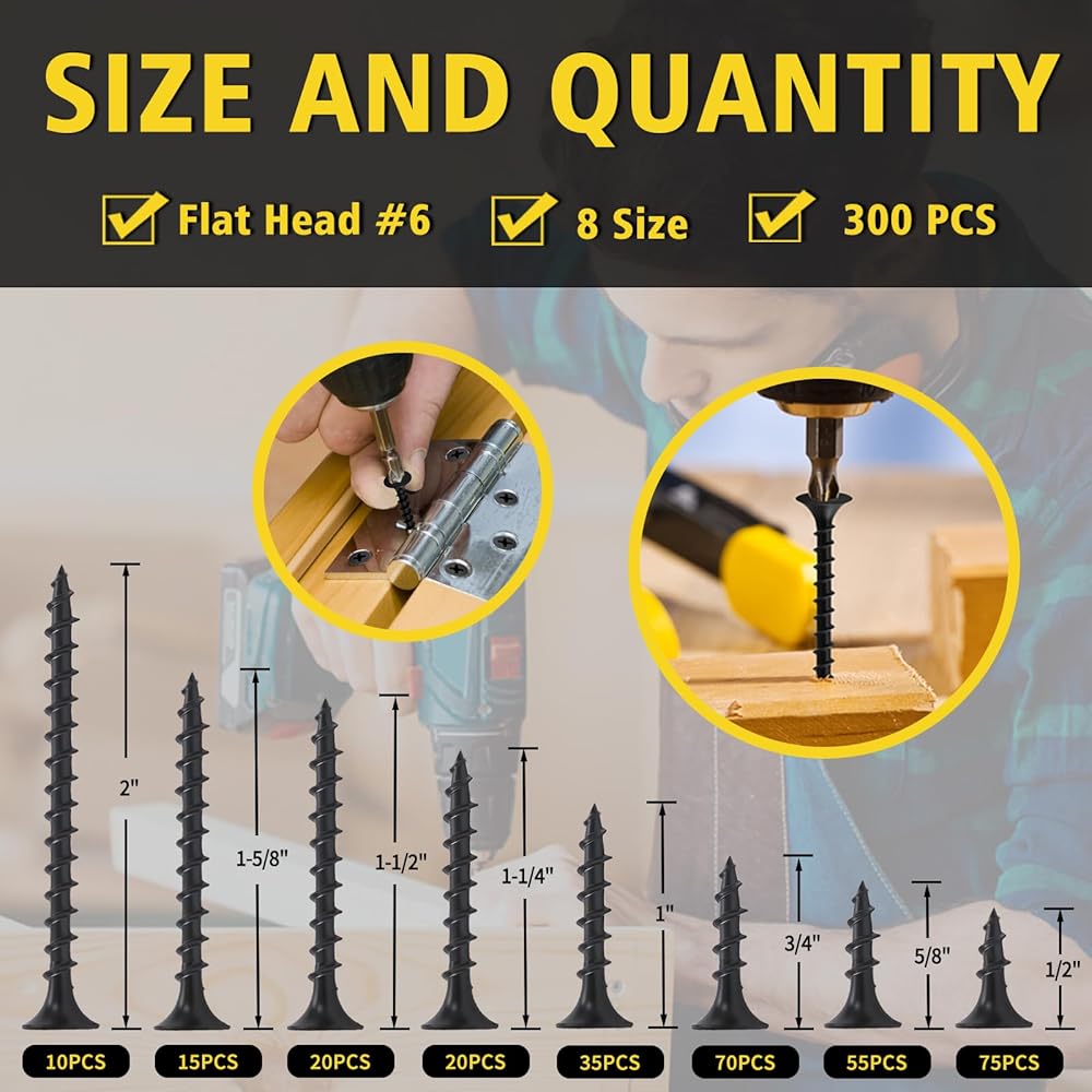 【قيمة أفضل】قطر مجموعة مسامير الحوائط الجافة FIXLINK: #6، الطول: 2 بوصة، 1-5/8 بوصة، 1-1/2 بوصة، 1-1/4 بوصة، 1 بوصة، 3/4 بوصة، 5/8 بوصة، 1/2 بوصة، الكمية: 300 قطعة؛ من البراغي الصغيرة إلى البراغي الطويلة، يمكننا تلبية جميع احتياجاتك. لقد قمنا بفحص جميع براغي الحوائط الجافة، ولن يكون عدد براغي الحوائط الجافة التي ستحصل عليها عند الشراء كافيًا.