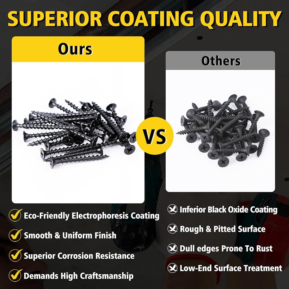 【مادة فائقة الجودة】هذه البراغي الخشبية السوداء مصنوعة من الفولاذ الكربوني عالي الجودة، وسطح معالج بالكهرباء، ومقاومة للصدأ، وتتميز بمقاومة جيدة للتآكل في البيئات السيئة. تحتوي هذه البراغي السوداء على طرف حاد وخيط خشن ورأس بوق ومسطح متقاطع، باستخدام مثقاب كهربائي أو مفك براغي يمكن بسهولة تشديد الاتصال.