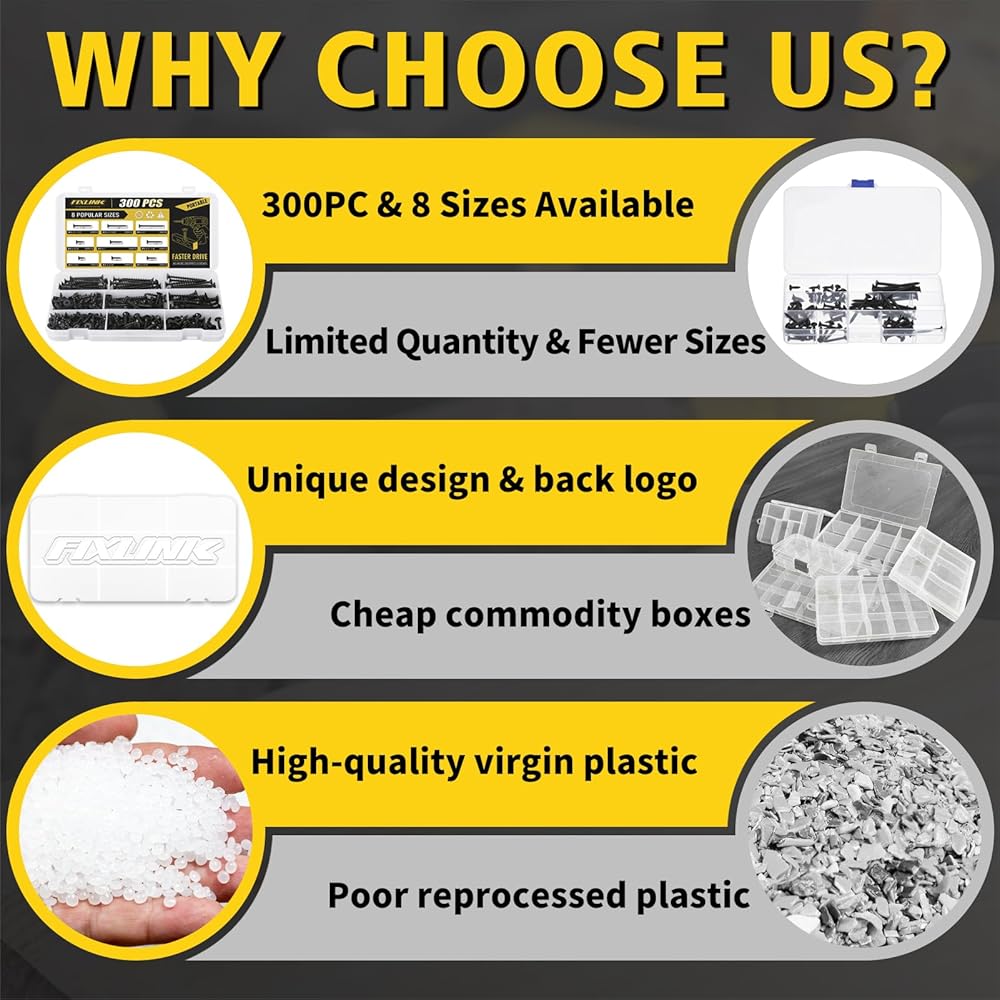 【قابلة للتخزين】مجموعة متنوعة من براغي الحوائط الجافة الخاصة بنا معبأة وفقًا للحجم، لذلك فهي فعالة في العثور على حجم البراغي المطلوبة. مواد ممتازة لصناديق البولي بروبيلين التي يمكن إعادة استخدامها كصناديق تخزين. الحجم المطابق للبراغي الخشبية من FIXLINK مناسب للاستخدام اليومي.