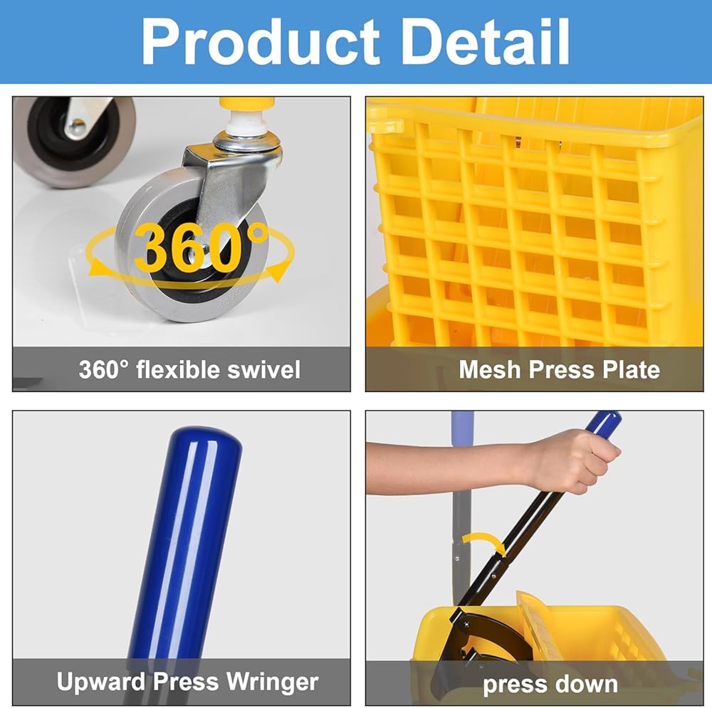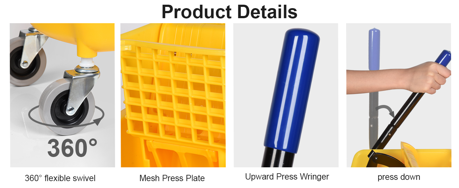 【عصارة ضغط جانبية عالية الكفاءة】 عصارة ضغط جانبية سهلة الاستخدام وقد تم تصميمها لأداء ما يصل إلى 50 ألف دورة عصر للمسح الشاق. يتيح لك Wringer الضغط لأعلى لإزالة الماء وتقليل الانحناء وإجهاد المعصم
