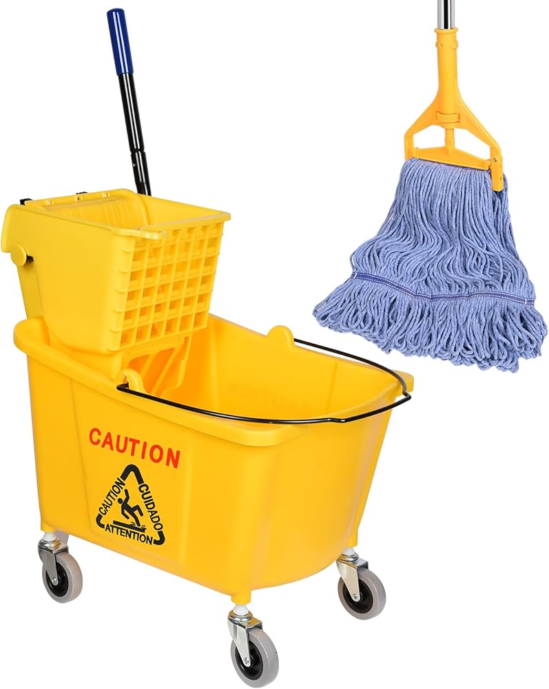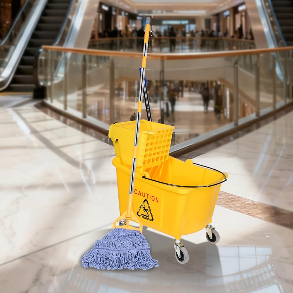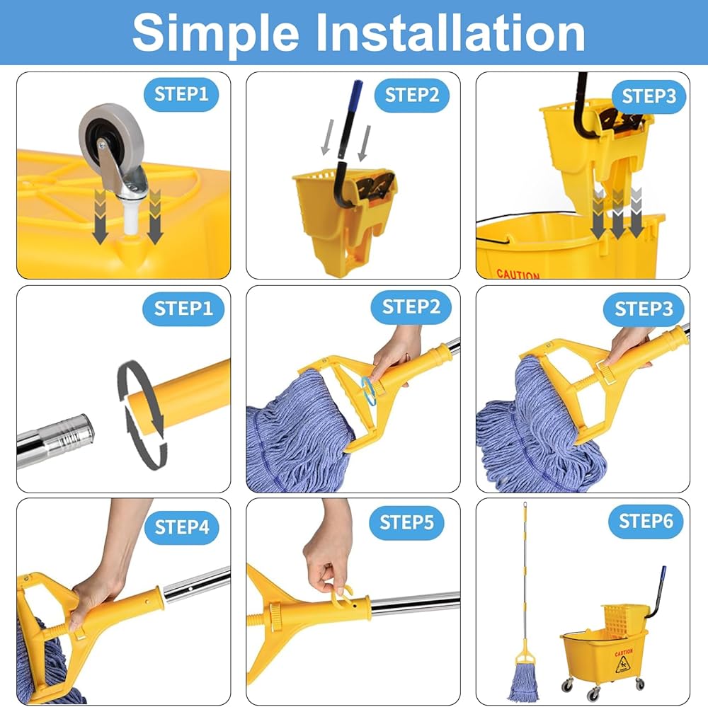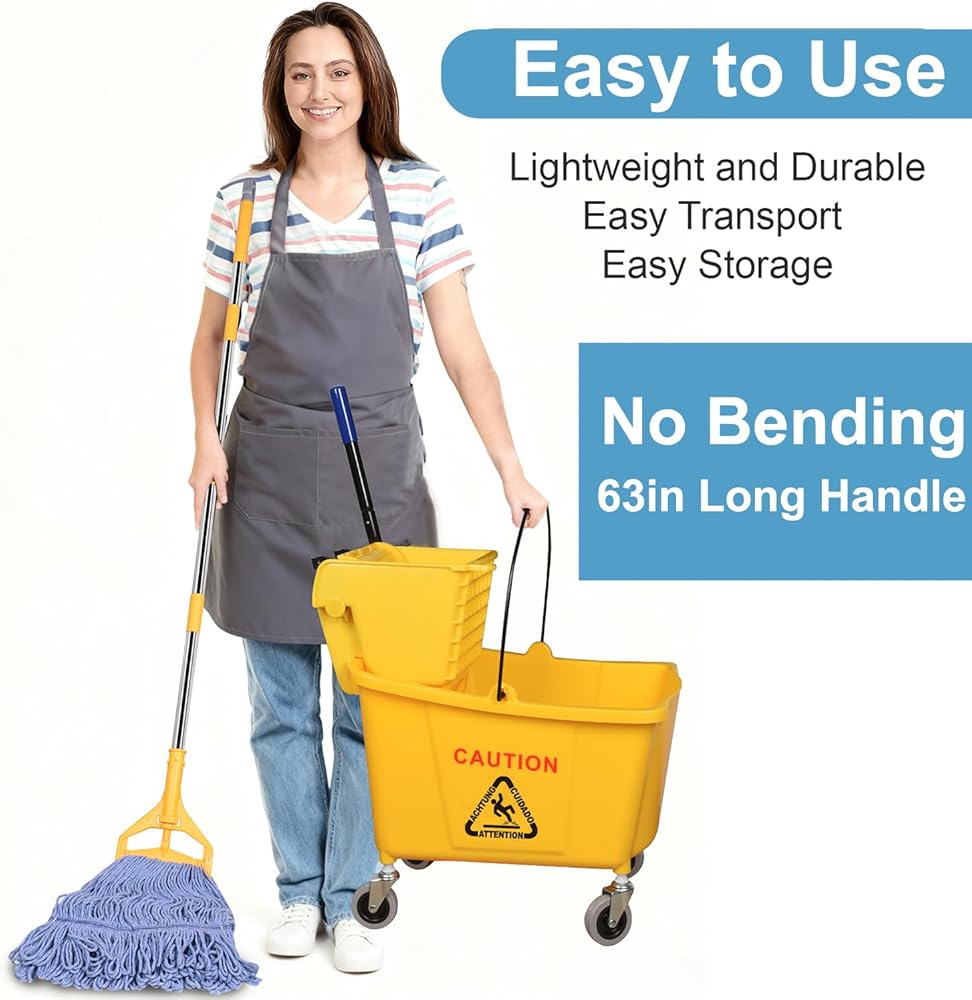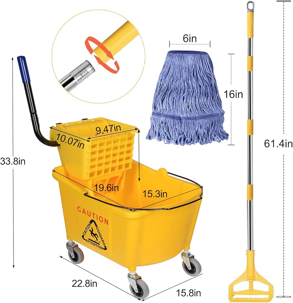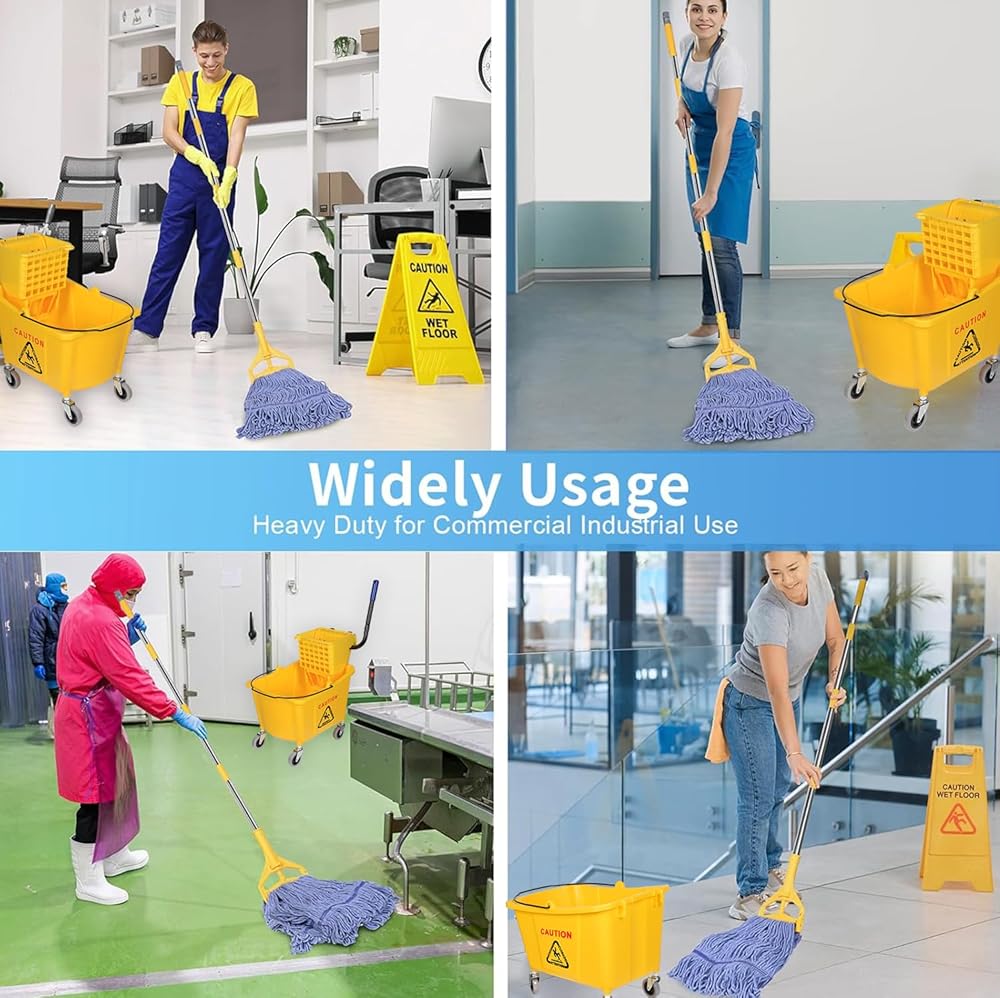 【مجموعة تنظيف الكل في واحد】 دلو الممسحة والممسحة المتوافقة حتى تتمكن من التنظيف بمجرد إخراجها من الصندوق. مجموعة الممسحة هذه رائعة للاستخدام في العمليات/الصناعية/الأعمال التجارية شديدة التحمل لتنظيف/تطهير الأرضيات، وتتضمن مجموعة واحدة من الممسحة التجارية.