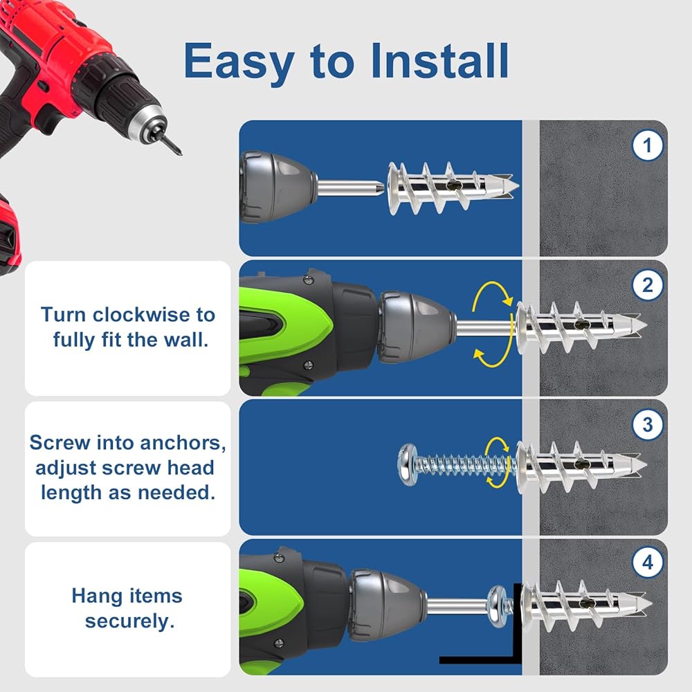 【ثقب ذاتي وتثبيت سهل】 تتيح لك الأطراف المدببة الحادة تثبيت هذه المثبتات مباشرة في الحوائط الجافة دون ثقب مسبق، مما يقلل الفوضى ويوفر الوقت والجهد. ما عليك سوى استخدام مفك براغي قياسي لتحقيق تركيب آمن ومأمون لمشروعاتك.