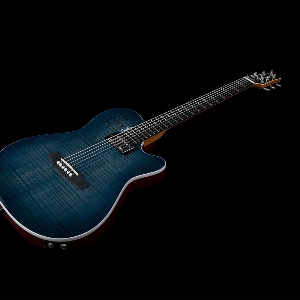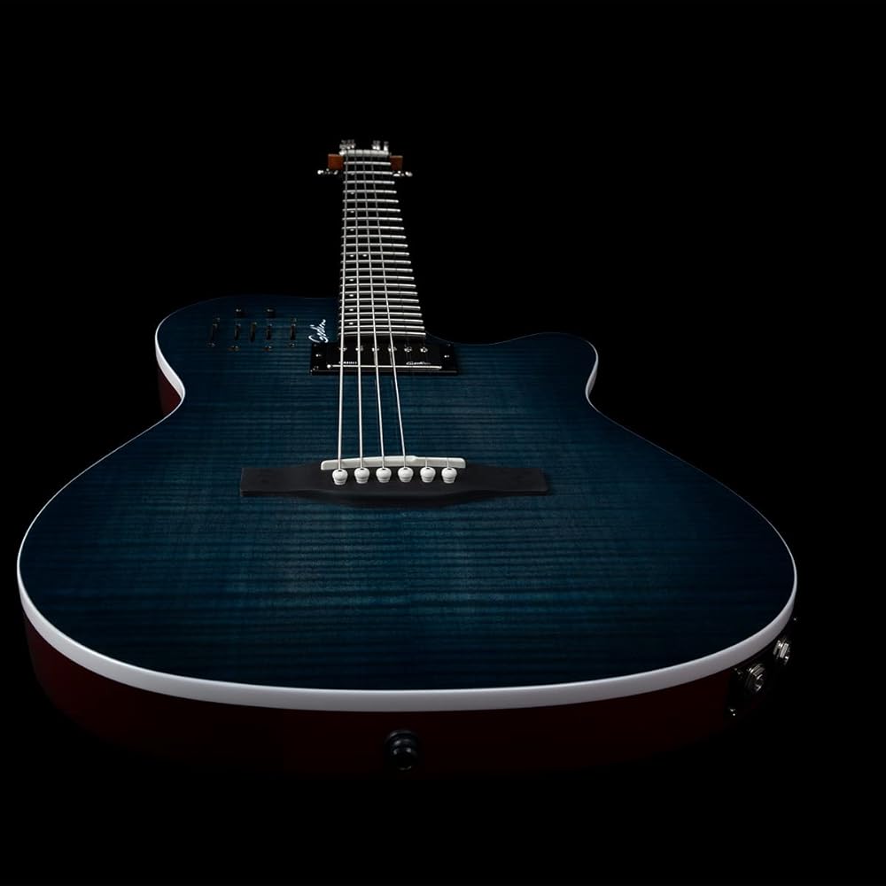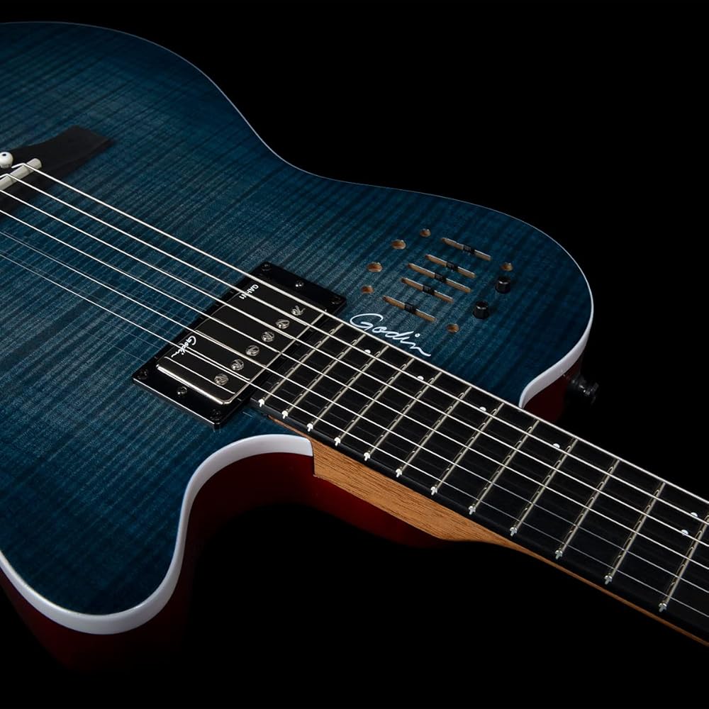 Electric and Acoustic in One Guitar When you want to plug in and get authentic acoustic tones — but also dial in the bite of a humbucker when you need it — the Godin A6 Ultra is your pick. It has separate outputs for its acoustic and electric voices, including separate controls for your acoustic and electric volume, treble, and bass. That way, you can easily dial in the right sound for whatever style of music you choose — everything from jazz to country to rock to slide guitar sounds are right here. And thanks to the Godin A6 Ultra's high-quality tonewoods, including a chambered silver leaf maple body, a solid cedar top, a mahogany neck, and a richlite fingerboard, the Godin A6 Ultra is just as tone rich as it is feature rich!An acoustic with the slinky feel of an electric The A6 Ultra incorporates Godin A Series innovations