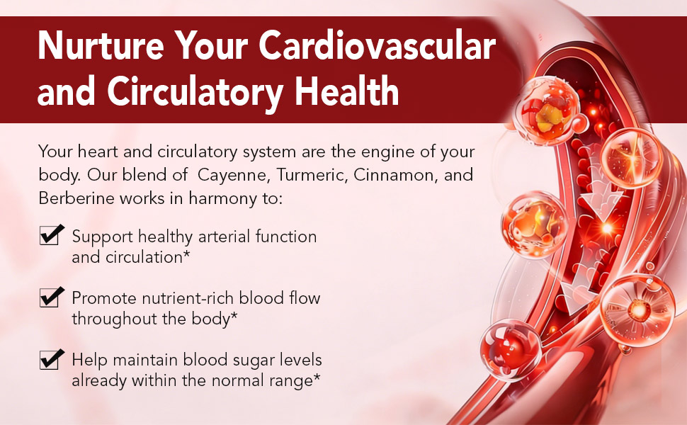 🌶️【يدعم صحة القلب والأوعية الدموية والدورة الدموية】اختبر الفوائد التآزرية لمكملات الكابسيسين - التي تتميز بمزيج مختار بعناية من الفلفل الحار والكركم والفلفل الأسود والبربرين والقرفة - للمساعدة في الحفاظ على تدفق دم صحي، ودعم وظائف القلب، وتعزيز مستويات السكر في الدم المتوازنة بالفعل ضمن النطاق الطبيعي، وتشجيع العافية الأيضية.