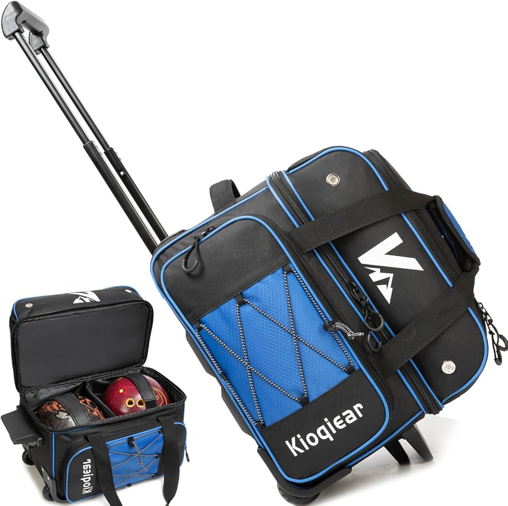 Kioqier Double Roller 2 Ball Bowling Bag with Large Separate Shoe Compartment and Retractable Handle.