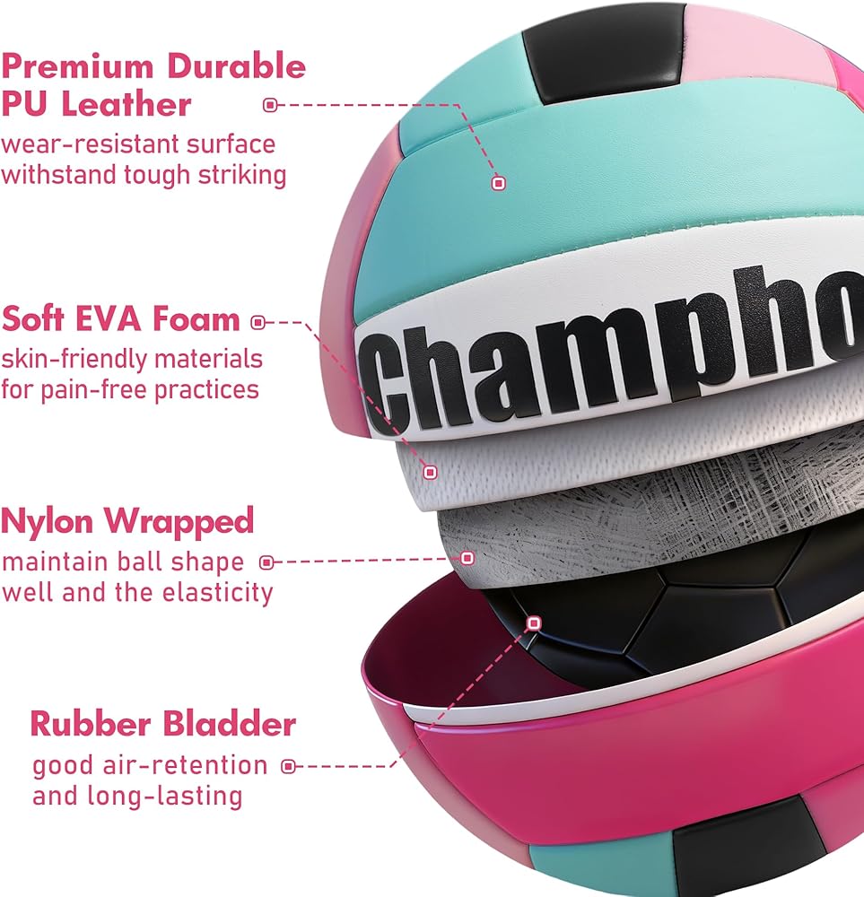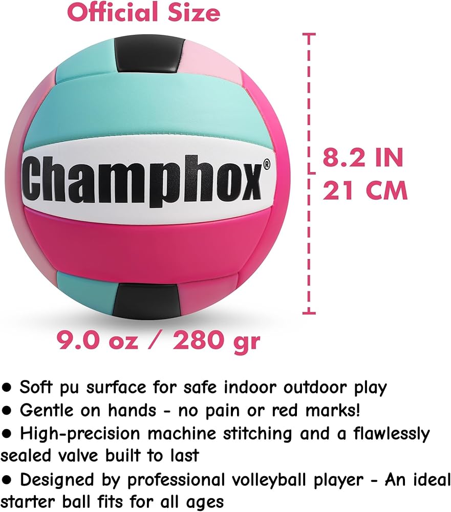 • المقاس الرسمي 5 والوزن المثالي: قطر الكرة الطائرة ذو الحجم القياسي 5 هو 8.2 بوصة ووزن 9.5 أونصة. تحكم في ضغط الهواء عند 8-9 رطل لكل بوصة مربعة، ولن ينكسر خط الكرة أو ينفجر عند اللعب في الحديقة أو الفناء الخلفي أو الميدان. تعتبر كرة الطائرة تشامفوكس مثالية لتعلم المهارات وتدريب الفريق والمباريات الرسمية والمسابقات للأطفال والشباب والمبتدئين من جميع مستويات المهارة في جميع الأعمار.