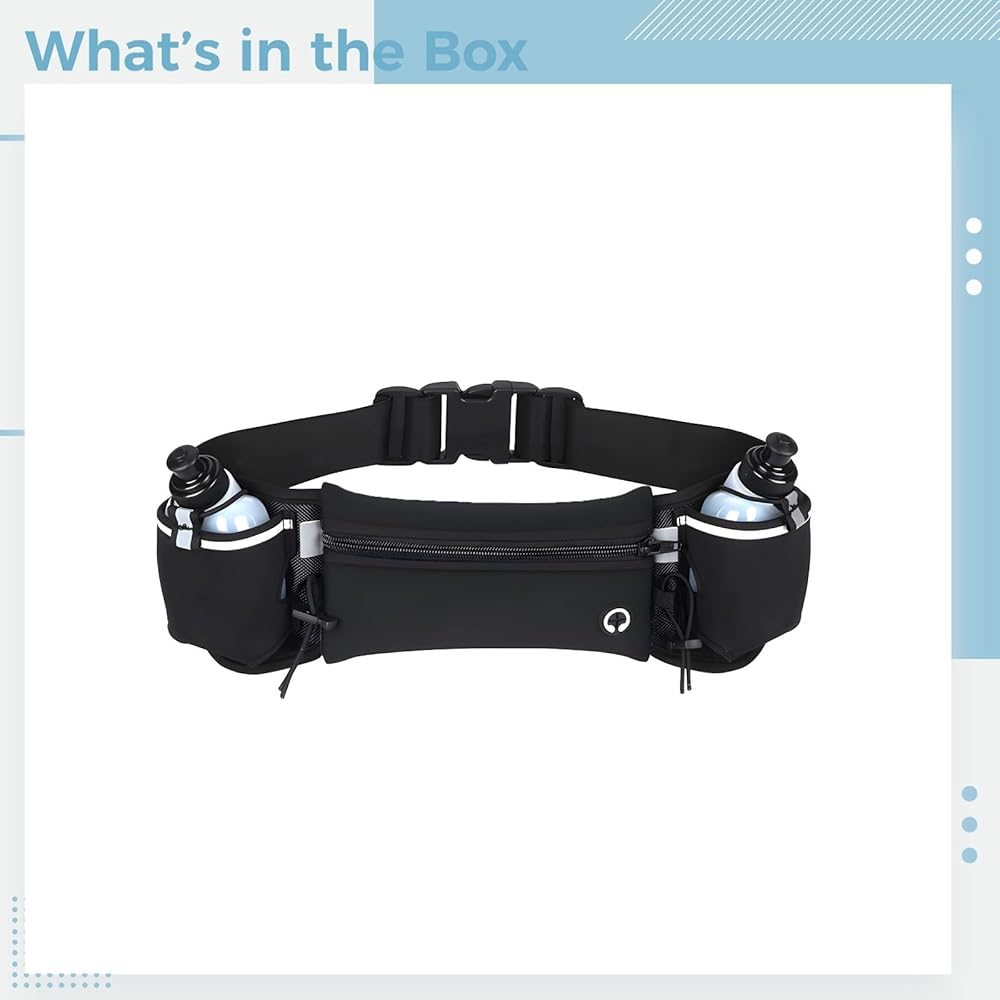 • Hands-free hydration solution: featuring two 5.9 oz / 175 ml water bottles, this belt ensures you stay hydrated without needing to carry anything; for any exercise