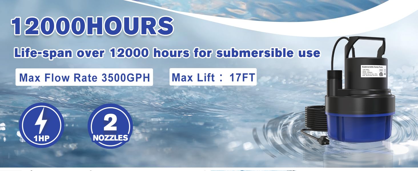 مضخة مياه فعالة: قم بتشغيل مهام إزالة المياه باستخدام محرك بقوة 1 حصان لمضخة المياه الغاطسة لدينا. توفر هذه المضخة الحوضية إزاحة مياه مذهلة تبلغ 3500 جالون في الساعة، مما يرفع الماء بسهولة حتى ارتفاع 17 قدمًا عموديًا. لا تتعامل هذه المضخة الغاطسة مع أصعب تحديات الضخ فحسب، بل تقوم المضخة الغاطسة بذلك أيضًا مع انخفاض استهلاك الطاقة، مما يجعلها موفرة للطاقة بشكل استثنائي وأكثر هدوءًا من أي وقت مضى.