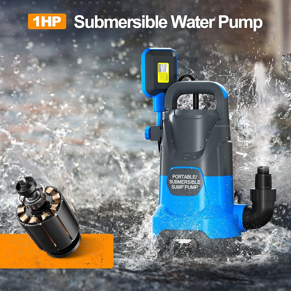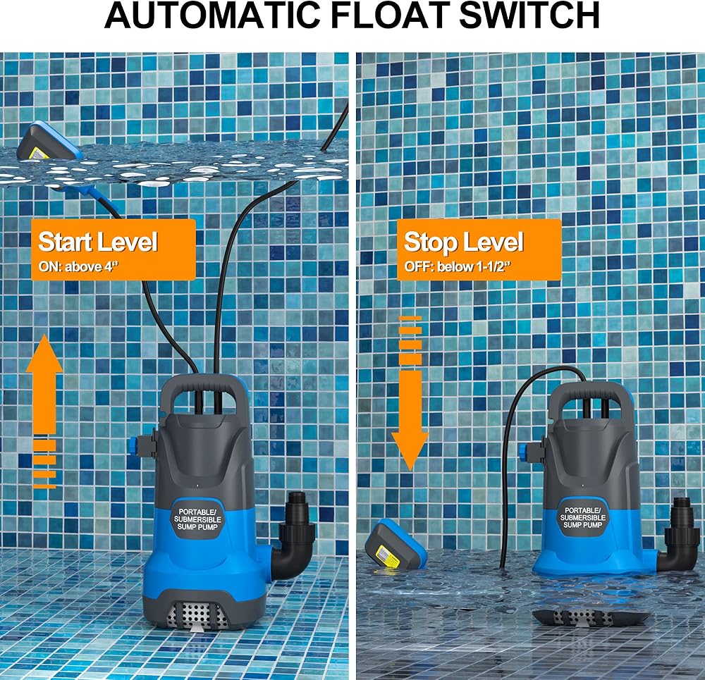 مضخة مياه غاطسة أوتوماتيكية بقوة 1 حصان مضخة إزالة المياه النظيفة/القذرة 4000PGH مع مفتاح تعويم، مضخة مياه كهربائية محمولة لنقل المياه لحمام السباحة والحديقة والبركة وتصريف الطابق السفلي