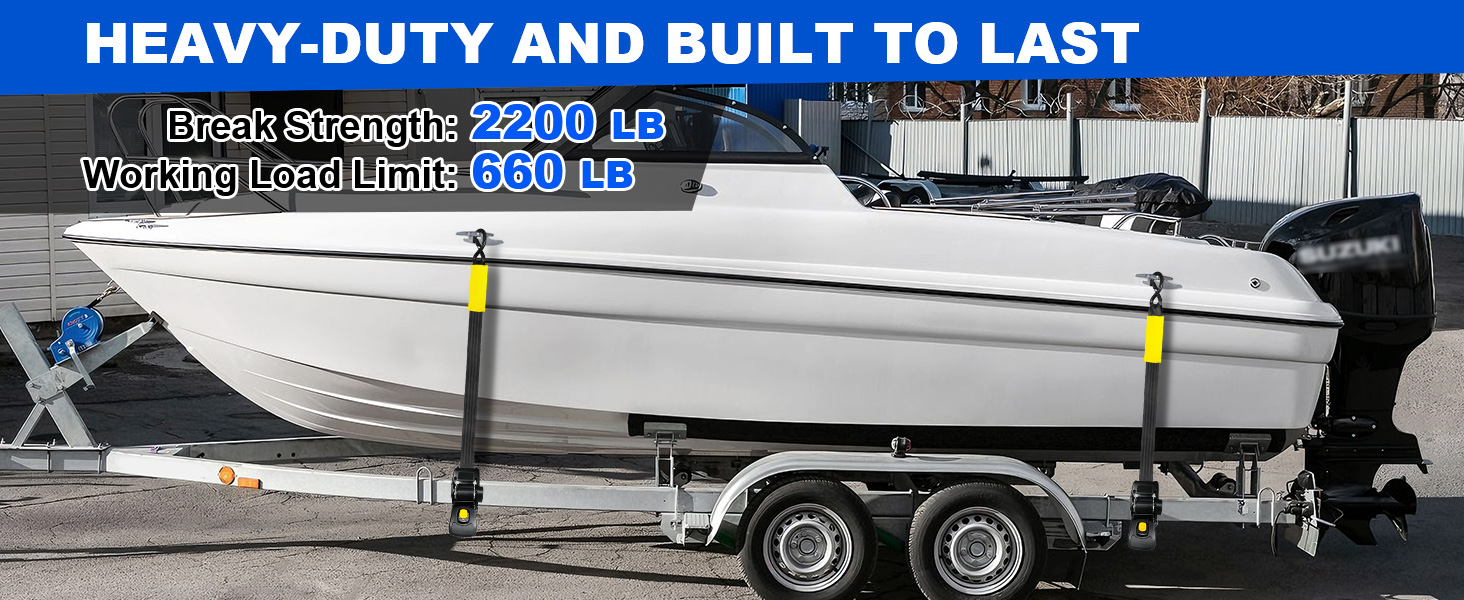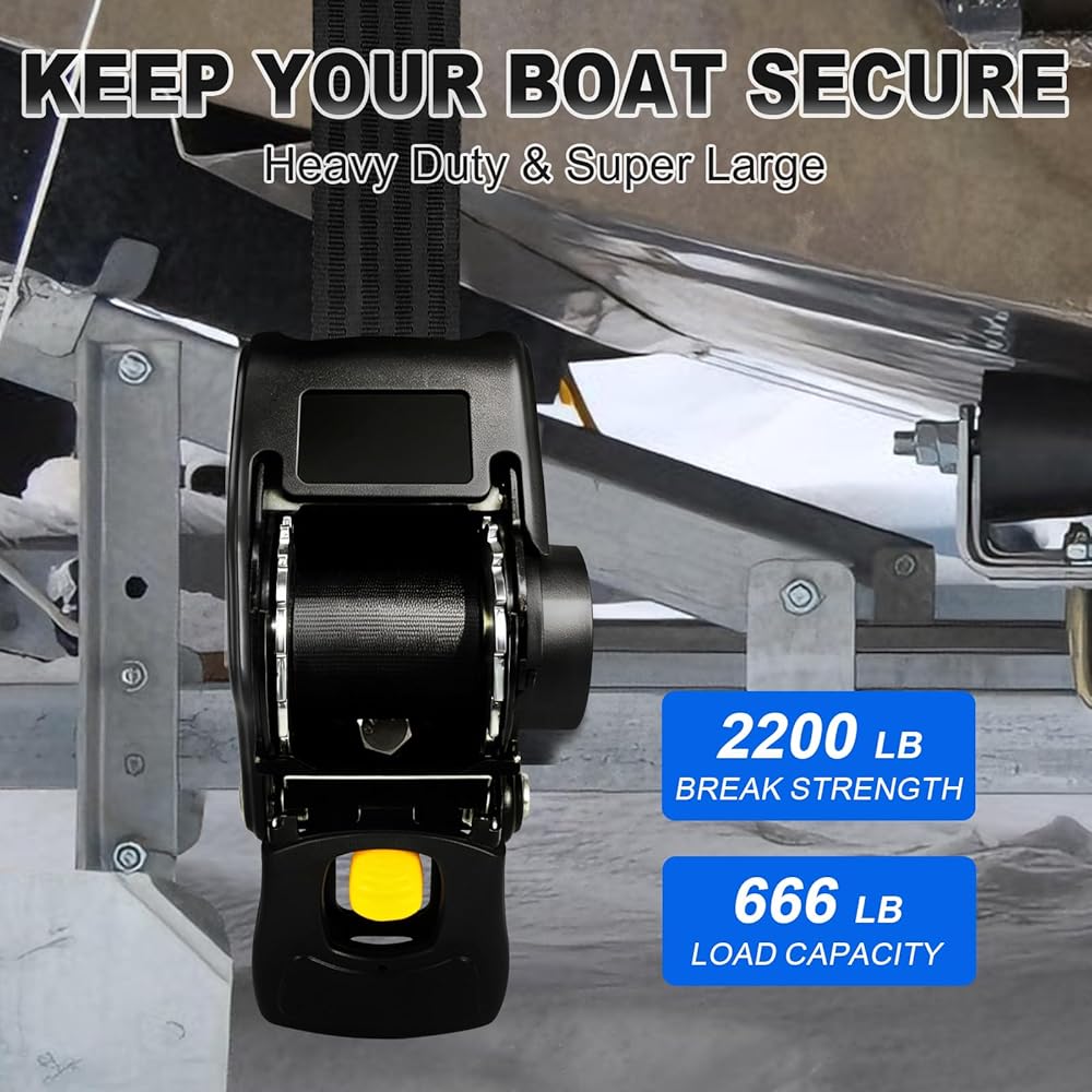 • 【قوة عالية وشديدة التحمل】تتميز أحزمة السقاطة RRS105 الموجودة على القارب بحزام بوليستر عالي التحمل وعجلات فولاذية معززة، مما يوفر قوة كسر تصل إلى 2200 رطل لمقطورة القوارب المساعدة، جت سكي