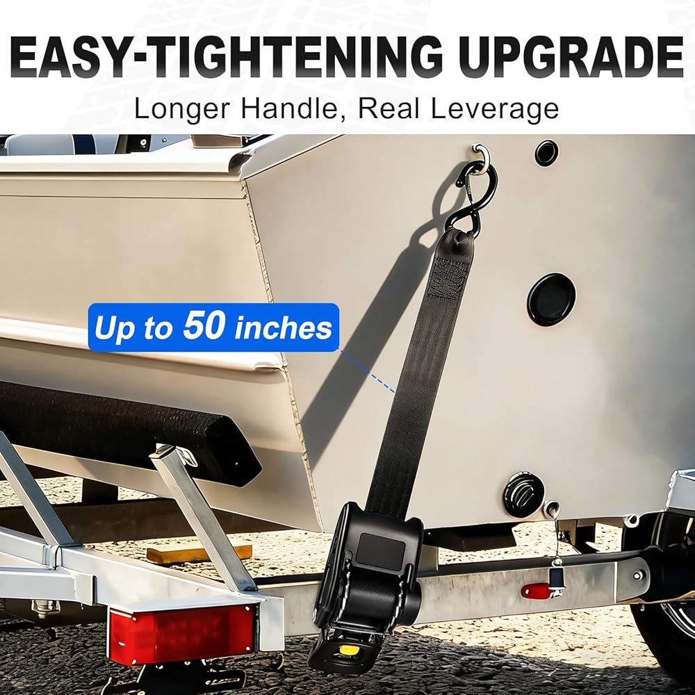 الترباس على أشرطة سقاطة القارب، ربطات مقطورة رافدة قابلة للسحب، 2 × 50 بوصة، قوة كسر 2200 رطل، حزام رافدة قابل للتركيب للخدمة الشاقة للملح والمياه العذبة البحرية Jetski Snowmobile ATV