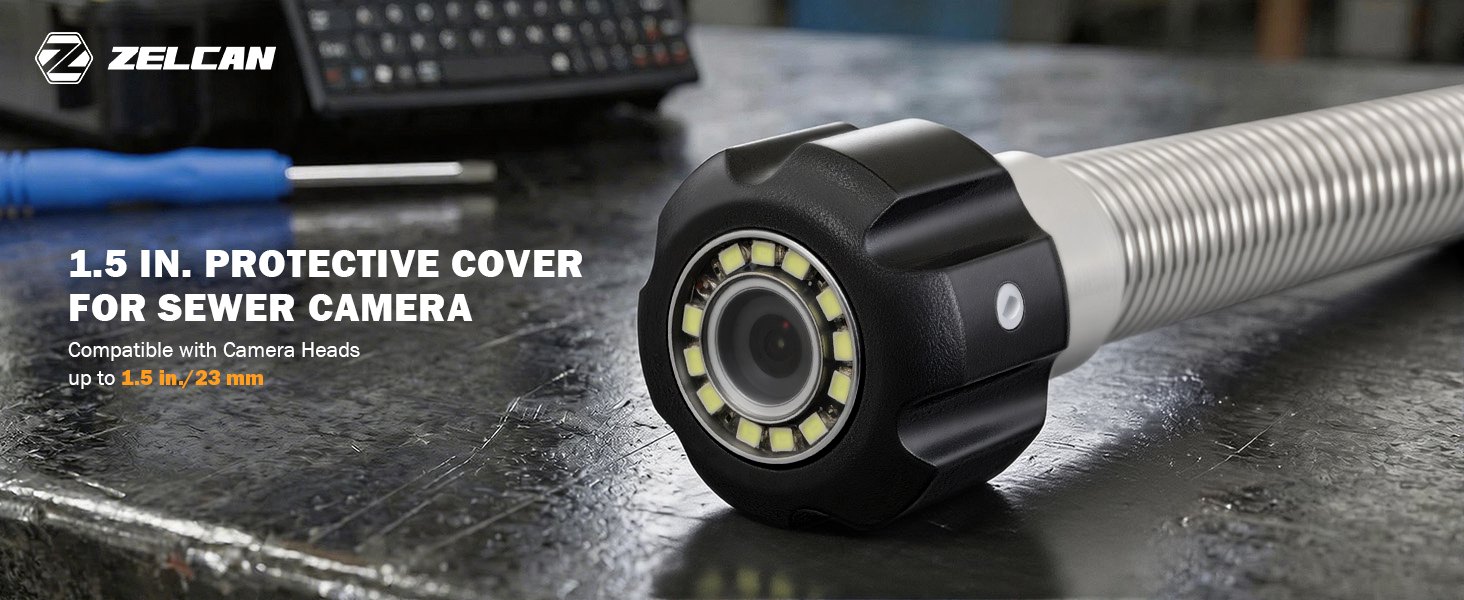 غطاء واقي لكاميرا الصرف الصحي من ZELCAN، واقي رأس كاميرا الصرف الصحي لكاميرا 0.9 بوصة / 23 مم و0.8 بوصة / 22 مم، ملحق كاميرا فحص تصريف الأنابيب لأنابيب 1.5 بوصة / 38 مم