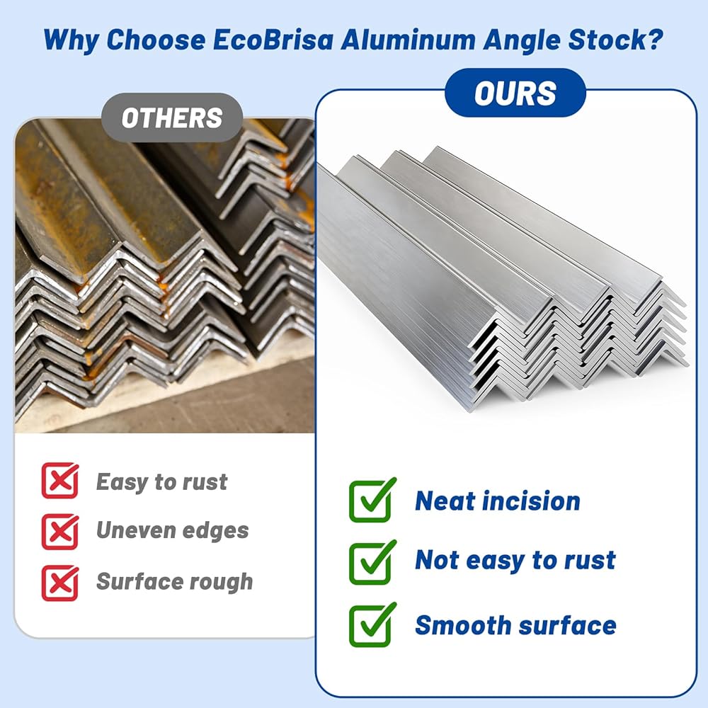 Premium Material: EcoBrisa aluminum angle stock is made of 6061 aluminum, which has good strength, even cuts and without scratches or burrs on the surface. Has good corrosion resistance, weldability, and oxidation resistance.