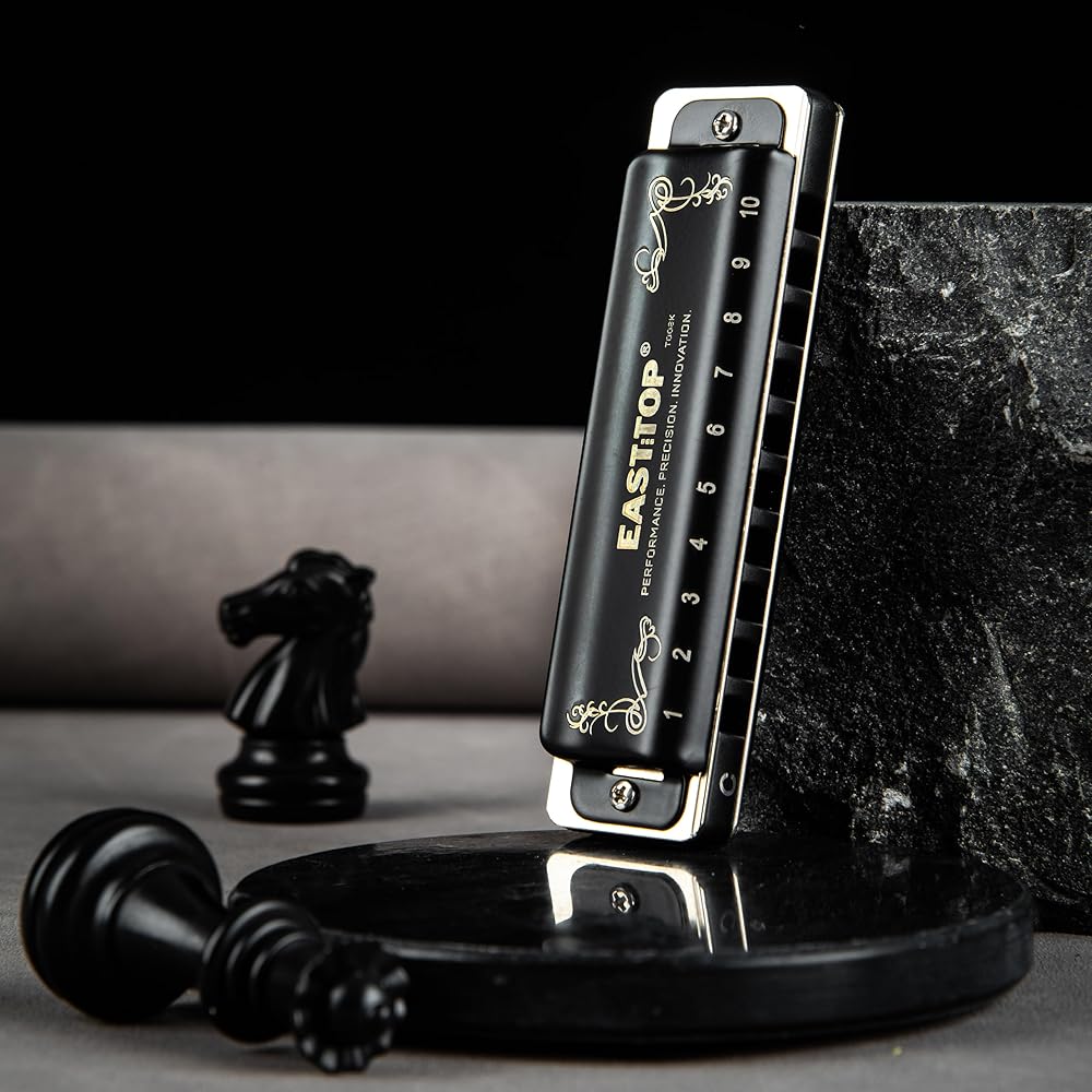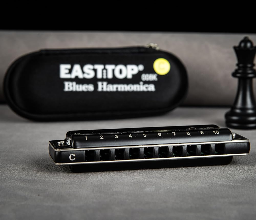 • Professional harmonica for all levels: EAST TOP 10 hole professional diatonic harmonica, suitable for Blues, Folk, Rock, Country, Jazz and more. Designed for professional harmonica players and beginners. The corner of the harmonica comb and reed plate is round, you will feel comfortable when playing, easy to use the skill, such as over-blowing and bending, giving the performer a new experience