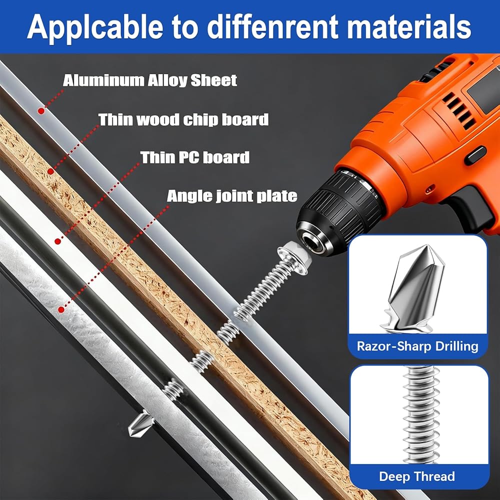 • مادة المنتج: مسامير التنصت الذاتية للمعادن مصنوعة من الفولاذ المقاوم للصدأ 410، الذي يتمتع بقوة عالية، ولا تشوه، ومقاومة للتآكل ومنع الصدأ. الفولاذ المقاوم للصدأ 410 له خصائص مغناطيسية.