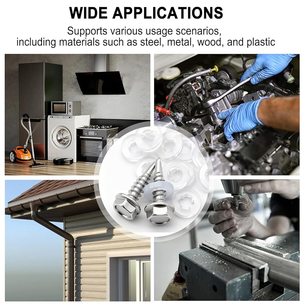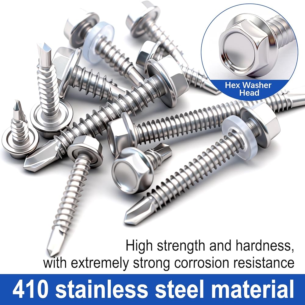 • #8#10#12#14 براغي ذاتية اللصق من الفولاذ المقاوم للصدأ (1/2 بوصة إلى 2 بوصة) مع غسالة مطاطية، مجهزة بصندوق يدوي محمول، وهي مريحة للتنظيم والتخزين والحمل.