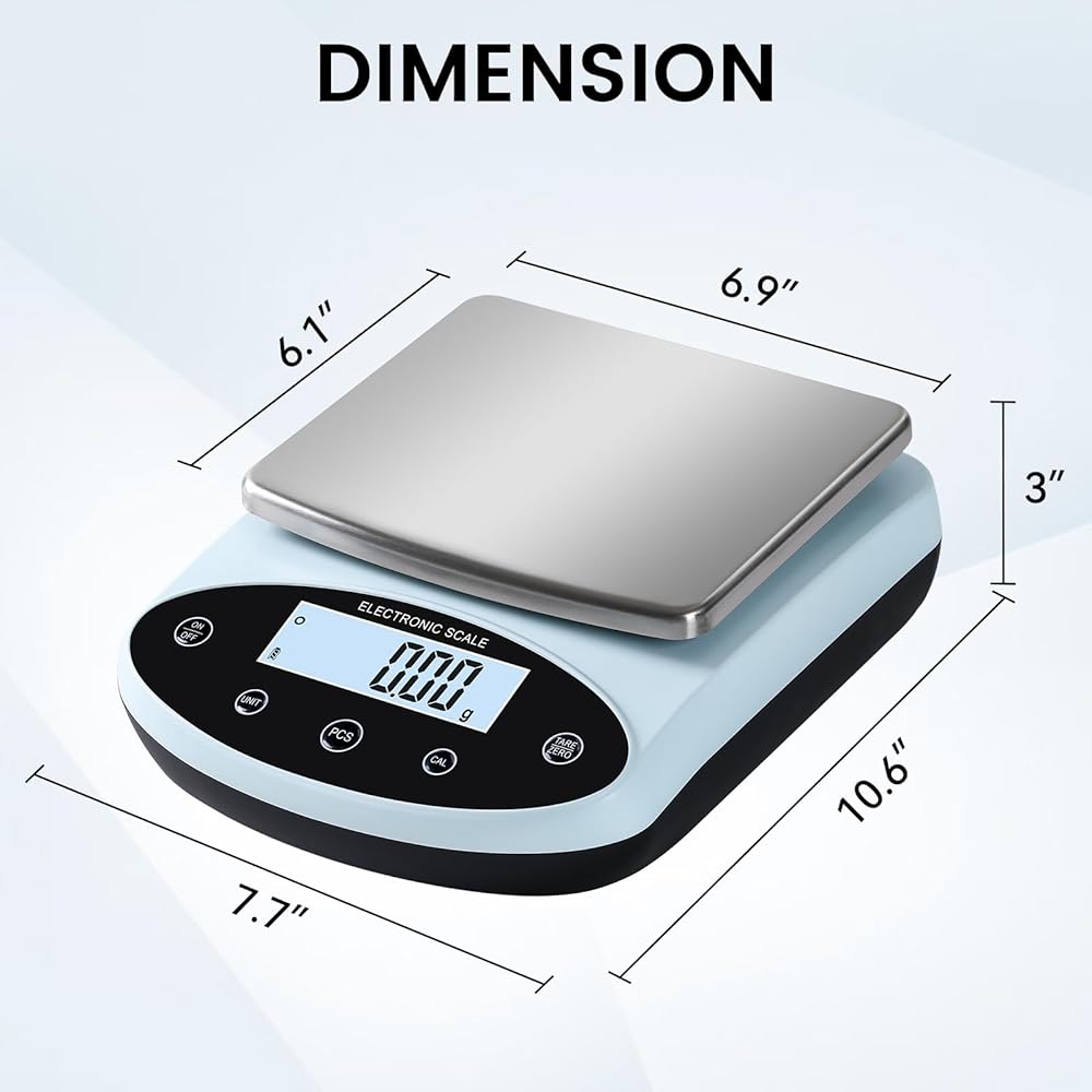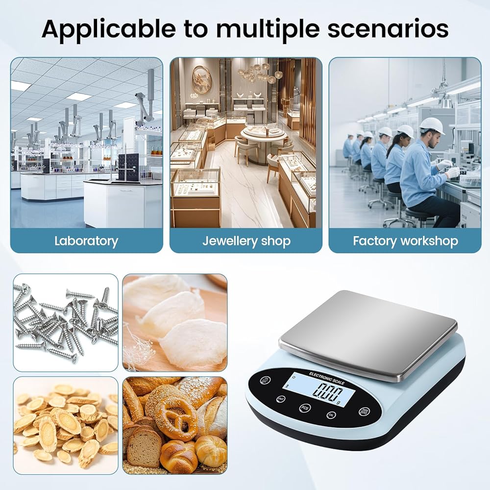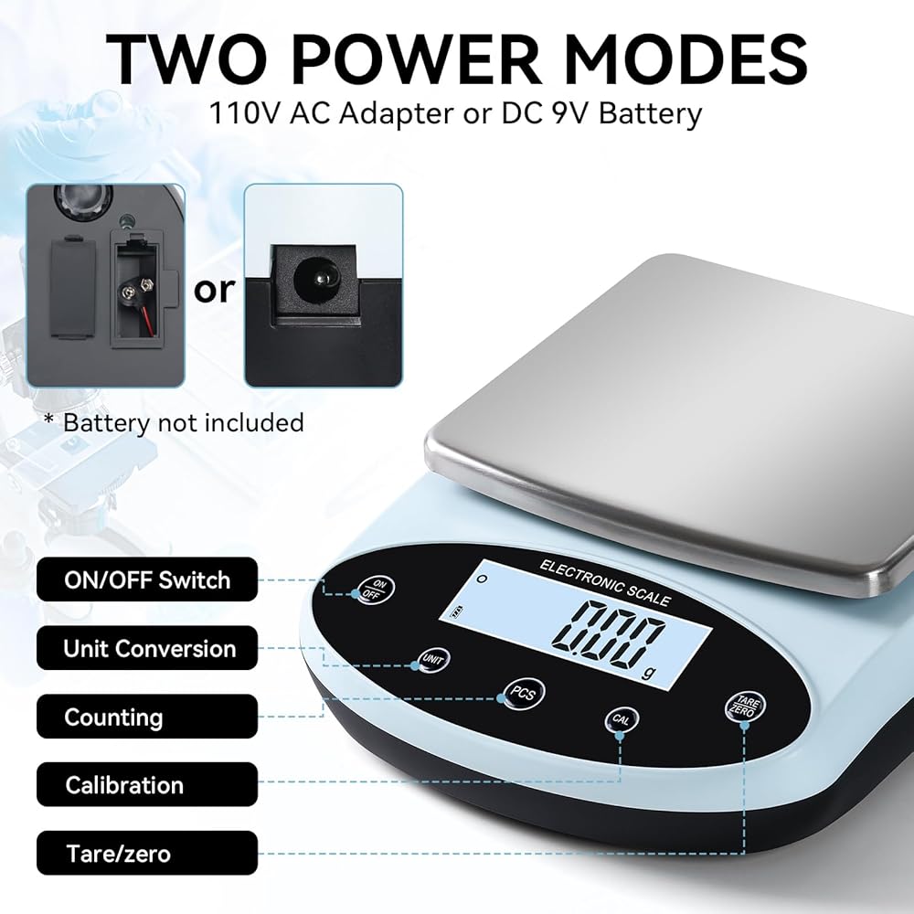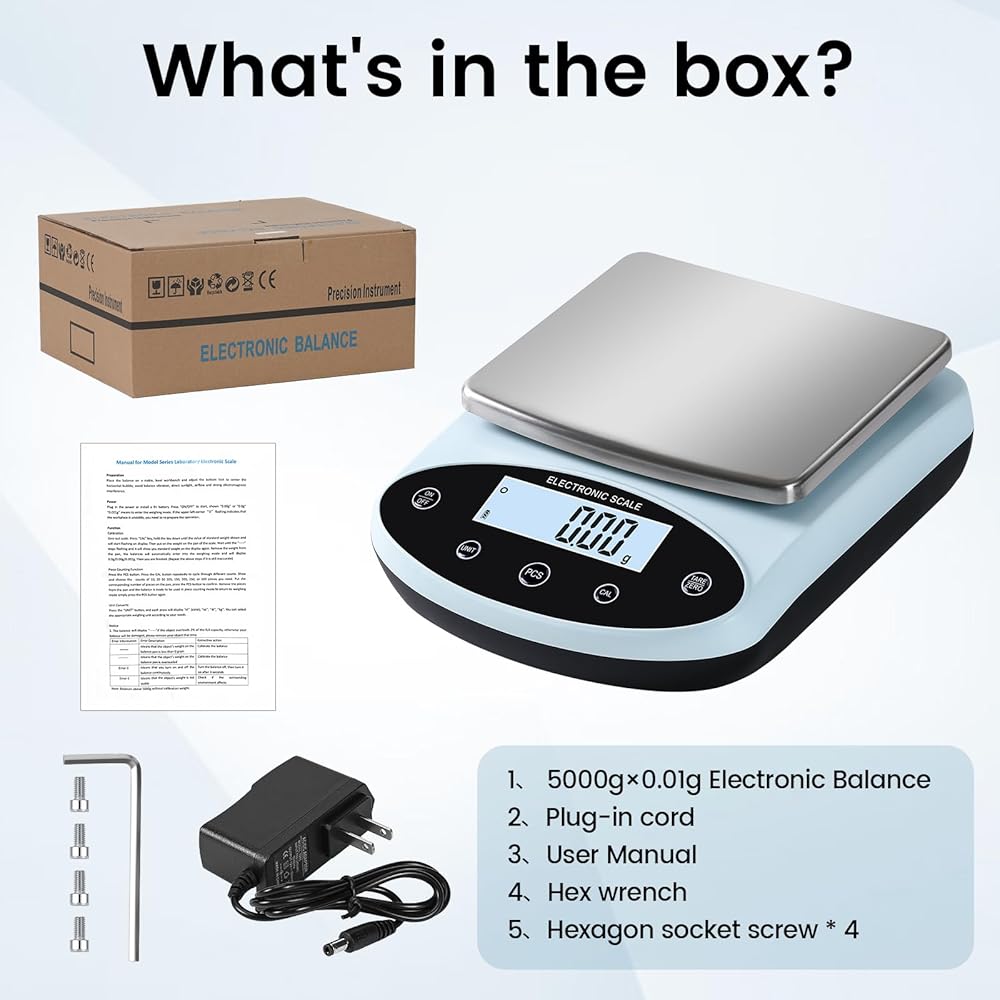 • مقياس رقمي عالي الدقة بوزن 0.01 جرام: يمكن لمقياس التوازن الدقيق قياس ما يصل إلى 5000 جرام بدقة دقة تصل إلى 0.01 جرام، وهو مناسب لتحديد جودة وكمية الأشياء بسرعة في الإعدادات الصيدلانية والعلمية والصناعية والزراعية والتجارية والمختبرية. وزن المعايرة غير متضمن.