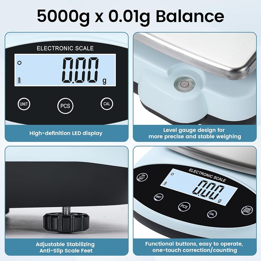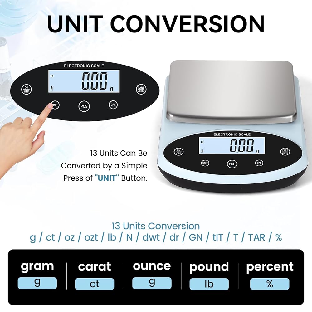 ميزان تحليلي 5000 جرام × 0.01 جرام مقياس جرام رقمي 0.01 جرام دقة مقياس مختبر دقيق 13 وحدة مقياس رقمي عالي الدقة للمختبر، وزن المجوهرات