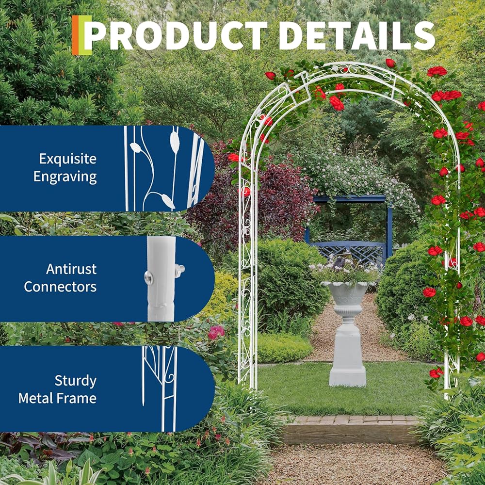 • 【Versatile Garden Arbor】--As a wedding arch backdrop stand, it serves as a breathtaking backdrop for engagement parties, weddings, anniversaries, birthdays, and other special occasions. It also can be used as a garden trellis, such as climbing roses, vines, cucumbers, etc. From climbing plants to hanging decorations, this pergola is sufficient for all your needs.