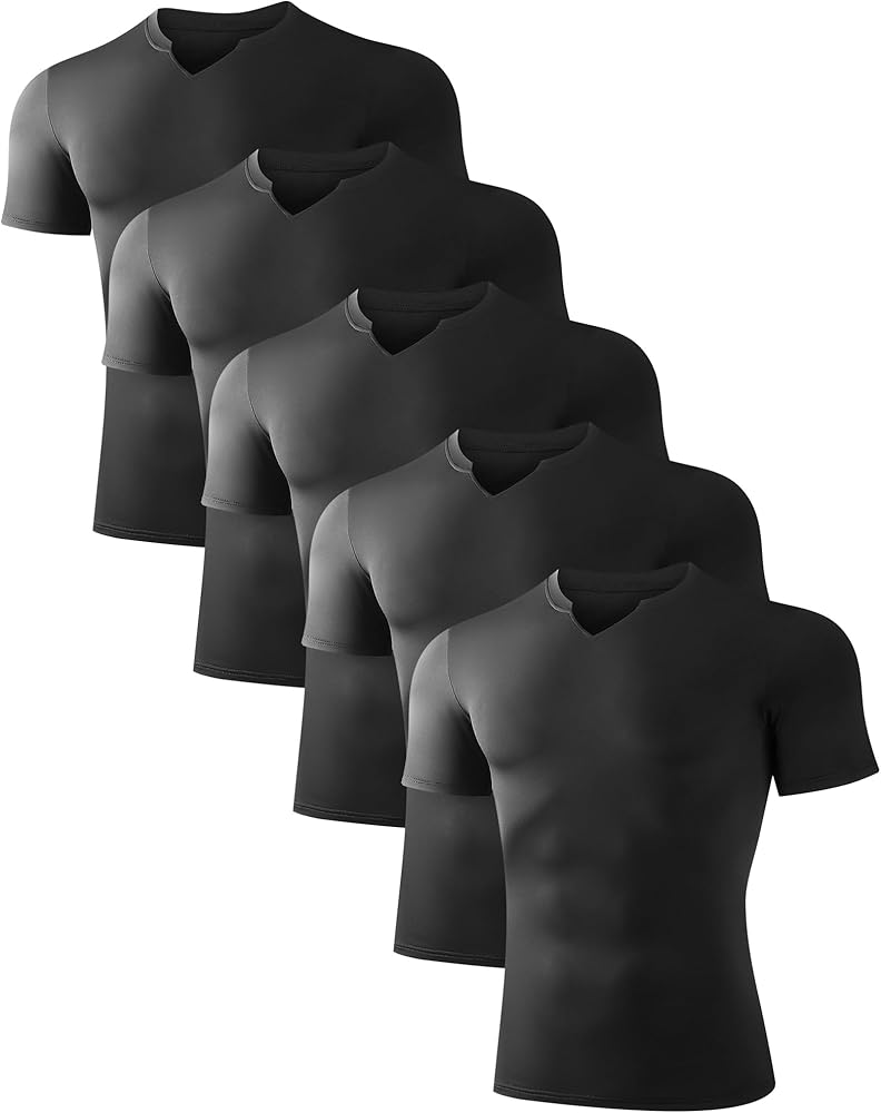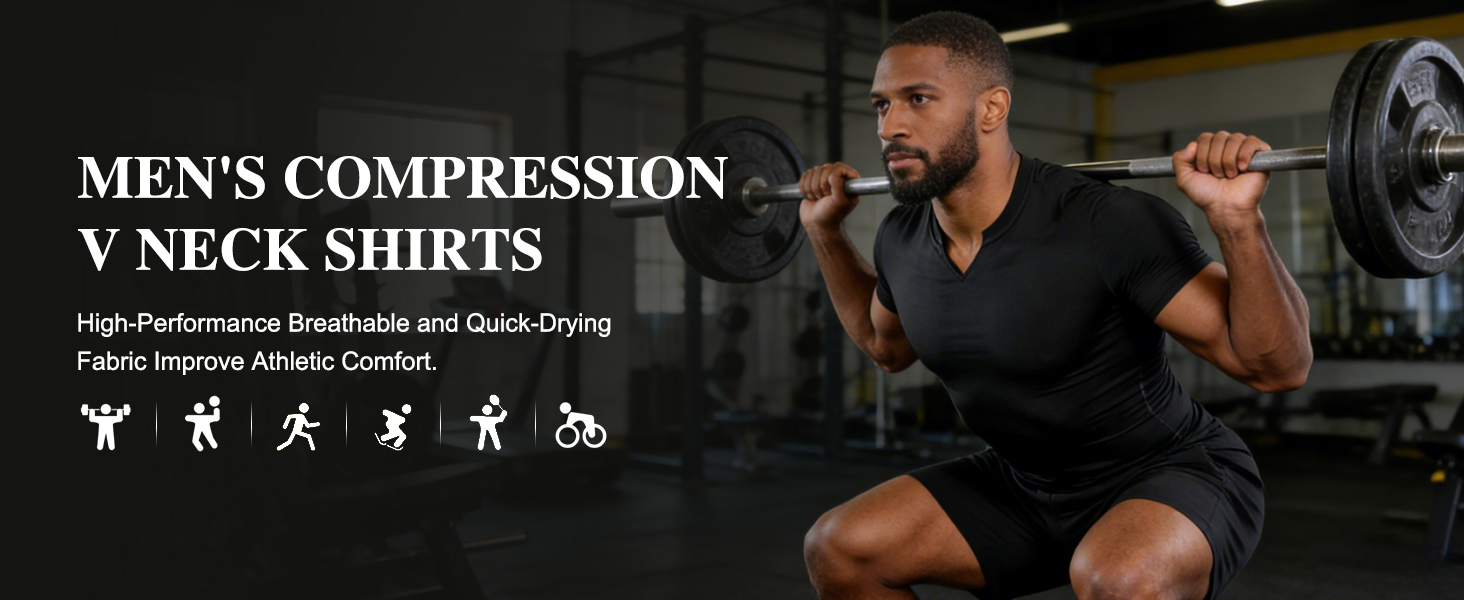 【نسيج ناعم ومريح】 يتميز هذا القميص الرجالي المضغوط قصير الأكمام بنسيج ناعم ومريح مع ملمس ناعم يشعر بأنه لطيف على الجلد، مما يعزز الراحة أثناء التمرينات.