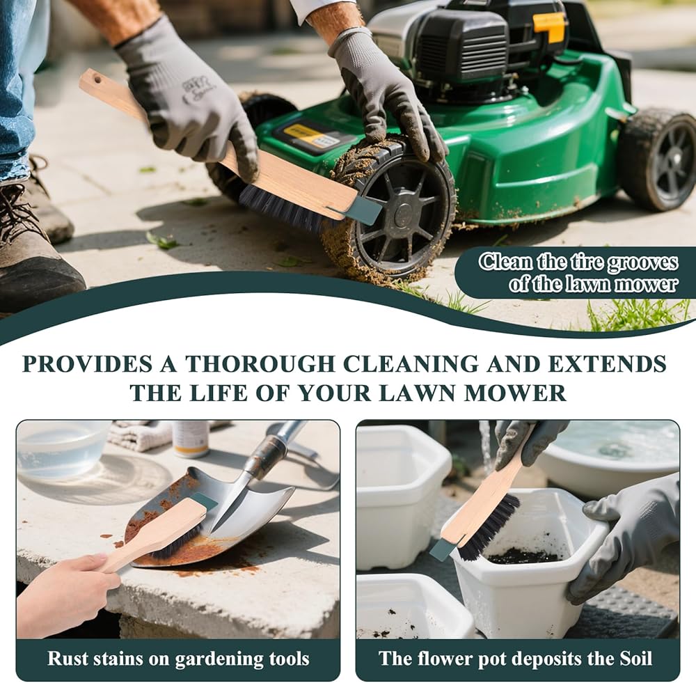 Gardening: Clean the lawn mower tire grooves, gardening tool rust stains, and dirt deposited in flower pots.